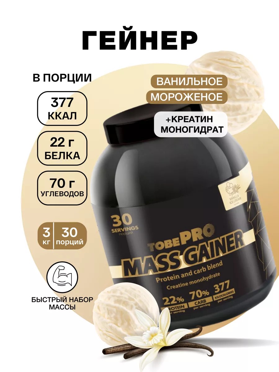ГейнерTobePRO MASS GAINER Ванильное мороженое 3кг 30порций