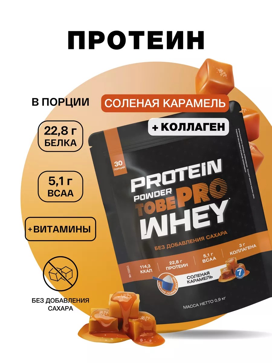 Протеин сывороточный Protein и коллаген карамель 900г30порц