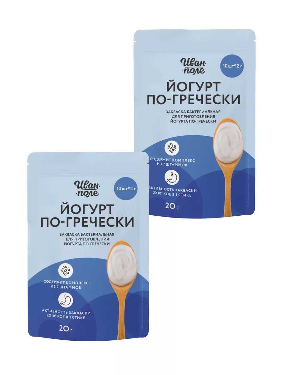 Бактериальная закваска «Иван-поле» разработана для приготовления греческого йогурта из коровьего или козьего молока в йогуртнице или мультиварке. В упаковке 10 стиков — из них получится до 4 литров натурального кисломолочного продукта. В состав закваски входит 7 уникальных штаммов концентрацией 2 млрд КОЕ на 1 стик.