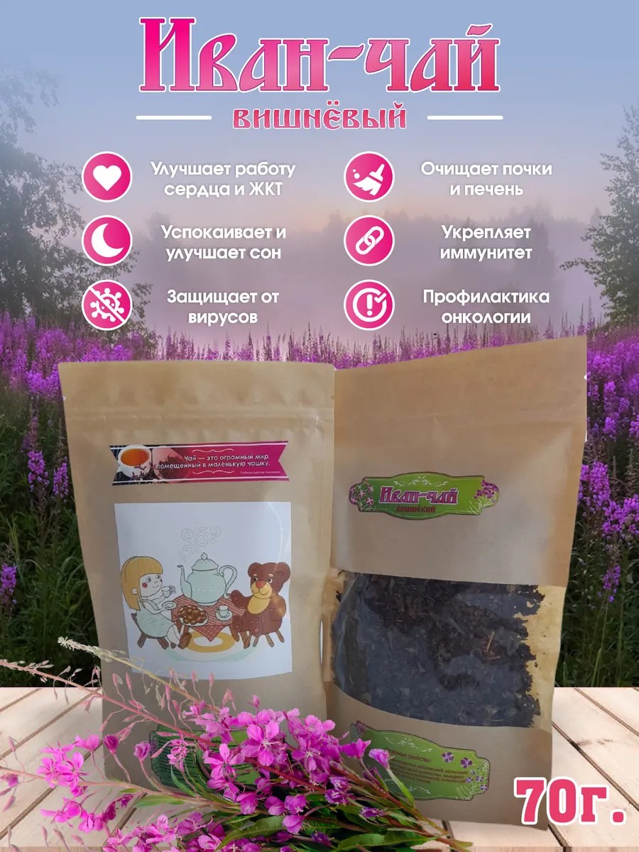 And most importantly, it is an unrivaled antiseptic. It has been scientifically proven that Ivan-tea surpasses all medicinal plants in its anti-inflammatory properties! Ivan-tea has a positive effect on the gastrointestinal tract, purifies the blood, helps remove waste and toxins, is indispensable for weight loss, strengthens the immune system and the body's defenses, and has a positive effect on kidney and liver function! Cherry leaf has a positive effect on the cardiovascular system; drinking Ivan-tea with cherries is recommended after strokes and heart attacks, normalizing the heart rhythm. It protects the body from fungi, bacteria, and viruses, inhibiting their growth and subsequent destruction.