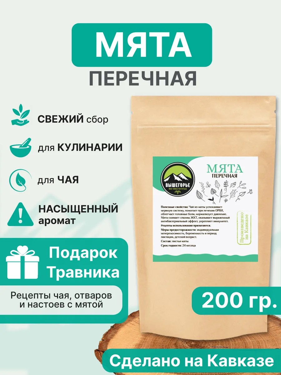 Иванчайная мастерская ВЫШЕГОРЬЕ Мята для чая перечная 200 грамм
