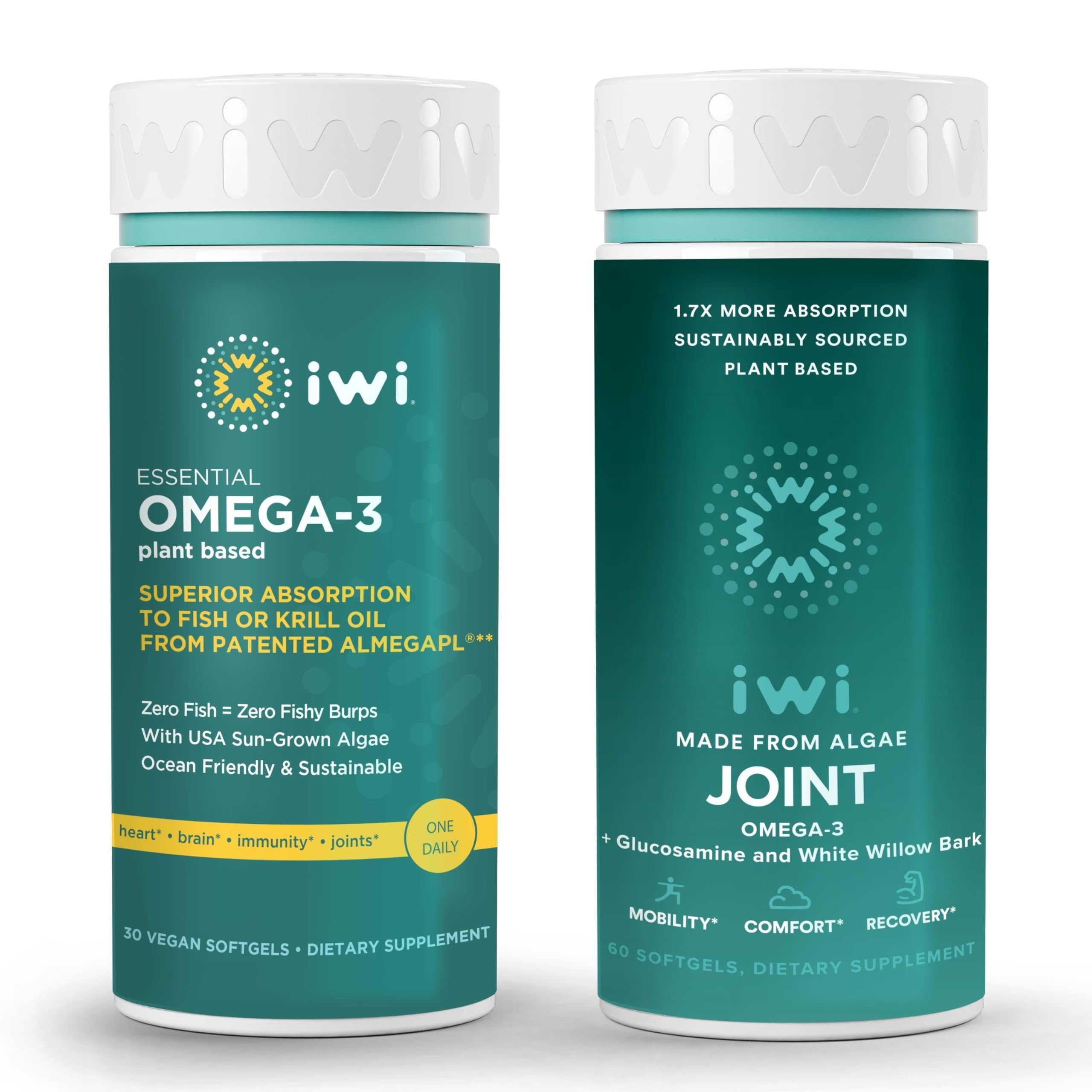 Iwi Omega-3 Essential & Joint Omega-3 Bundle 30 Servings Vegan Plant-Based Algae Omega 3 Krill & Fish Oil Alternative No Fishy Aftertaste