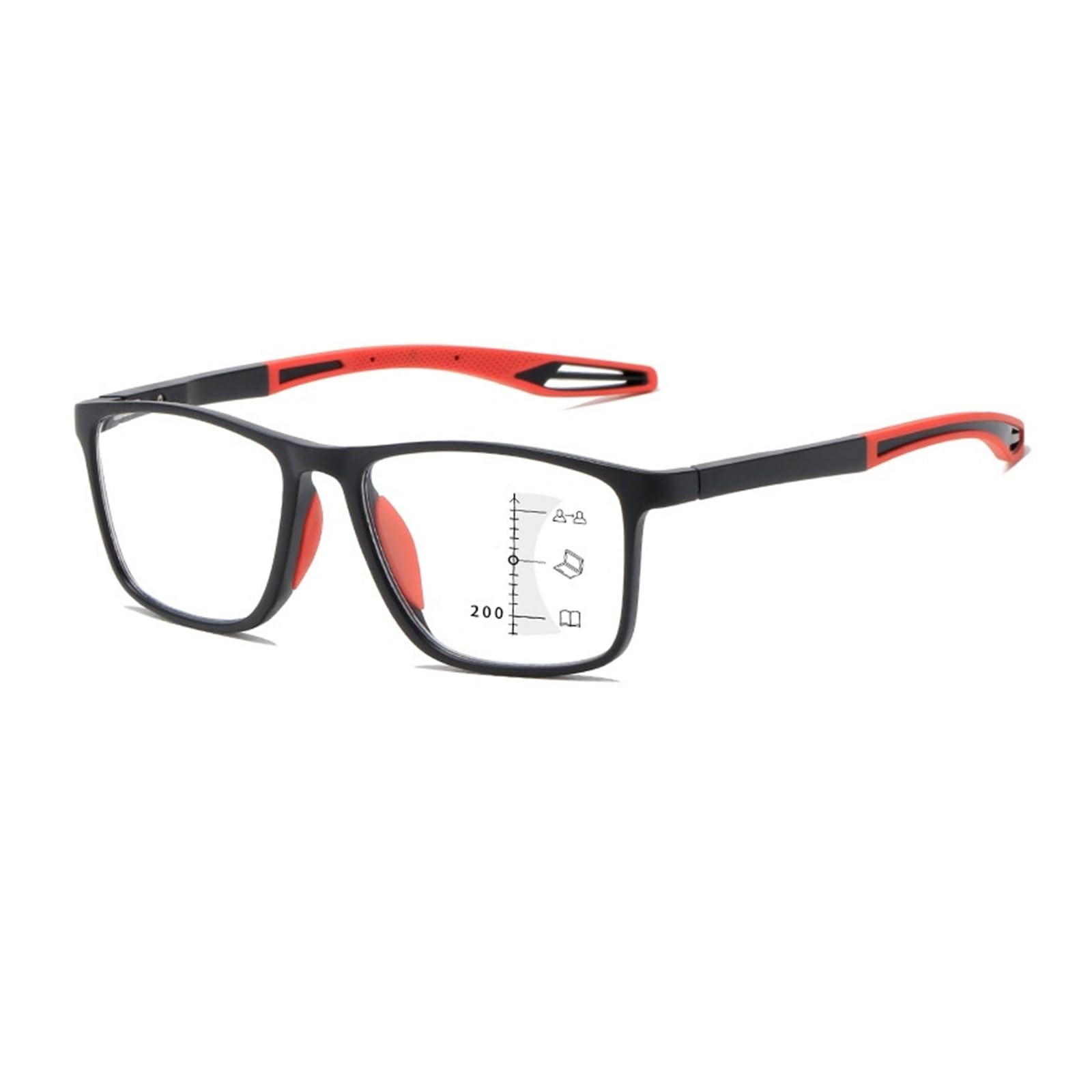 Iynwbjts Tr90 Sport Progressive Multifocus reading glasses high-resolution anti-blue lighting glasses for distance and close use (color: Black Framed Red Legs Size: 2.00) 2.00 Black Framed Red Legs