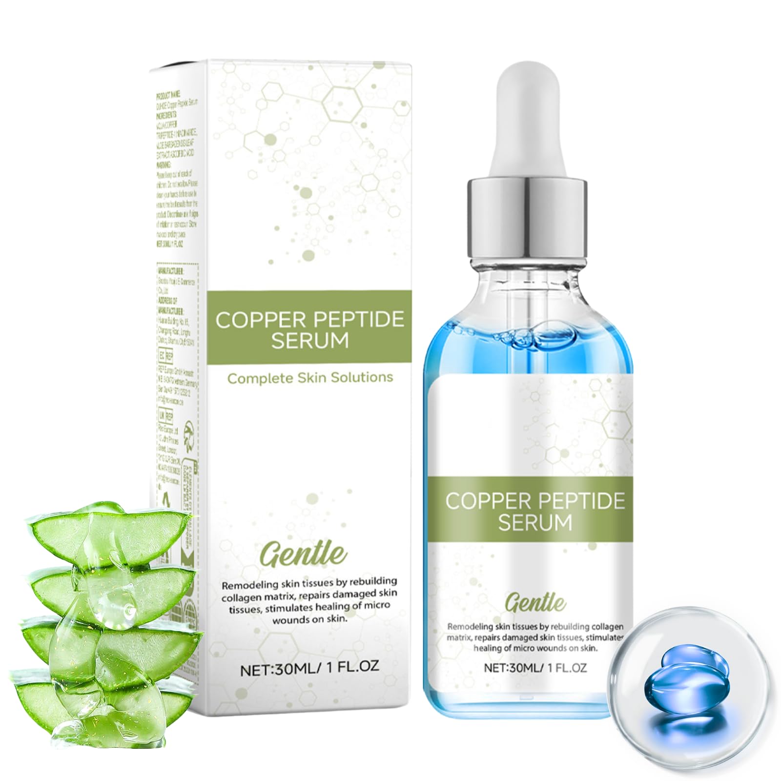 Copper Peptide Anti Aging Serum- A YOUNGER LOOKING SKIN ? Say goodbye to dull skin and hello to skin that glows. Get glowing skin you’ll love, without make-up! Our copper peptide serum helps to replump fine lines and reduce their appearance. This peptide serum will boost your skin's glow, kick starting your day feeling confident and bright. ? Whether you're looking for a solution for aging, wrinkles, fine lines, dark spots, uneven skin tone or discoloration, we have the face serum for mature skin that's right for you. Increase your skin elasticity & firmness with this serums skincare today! FEATURE v Anti aging v Nourish and smooth the skin v Protect skin from damage v Reduce the appearance of wrinkles v Fade acne scars while unclogging pores v Improving Skin Tone USING SUGGESTION Step 1: After cleansing, take an approriate amount of skincare serum and rub it in the palm of your hand. Step 2: Gently press the face serums from the chin to the center outwards, toward the cheeks and the forehead. Step 3: Gently massage your finger abdomen to help your face absorb. (Actual color may be slightly different from the image due to different monitor and light effect.) SPECIFICATION Product Name: Blue Copper Peptide Serum Face Net Content: 1Pcs 30ML Shelf Life: 3 Years Skin Types: Suitable for All Skin Types Storage Method: In a Cool and Ventilated Place WARM REMINDER 1.Keep out of reach of children. 2.Avoid direct contact with eyes. If contact occurs, rinse thoroughly with cool water. 3.Stop using if redness or irritation occurs, and seek medical assistance if irritation persists. SAFETY WARNING For external use only. Avoid contact with eyes. Keep away from naked flame or direct heat sources?Copper Peptide Serum-Suitable for All Skin Types?Whether you have dry, oily or combination skin, you can use this peptides serum for face and insist on long-term use for better results. ?Repair damaged skin?For skin with trauma, acne scars, or minor injuries, blue copper peptide can help accelerate the healing process and reduce scar formation.The peptide serum can stimulate the production of collagen and elastic fibers in the skin, helping to improve skin elasticity and firmness. ?Improving Skin Tone?Our Copper Peptide Serum helps improve uneven skin tone, discoloration, and achieve a more balanced and radiant complexion. The peptide moisturiser reduces skin pigmentation, improves dullness and uneven tone, make the skin smoother and more delicate. ?Deep Moisturizing?Our rejuvenating copper peptide can deeply penetrates the skin, providing essential copper and other beneficial ingredients to moisturize and protect the skin.The peptide hydrating serum increases skin's moisture content, reduce dryness, and keep the skin soft and smooth,making it bright,firm,energetic. ?Anti-Aging & Wrinkles?Copper peptides serum is an effective anti-aging serum, enriched with natural antioxidant ingredients. The copper peptide anti aging serum effectively rebuilds collagen, and reduces fine lines and wrinkles by increg the skin's self-healing ability. Improve skin elasticity, firmness, and slow down the aging process.