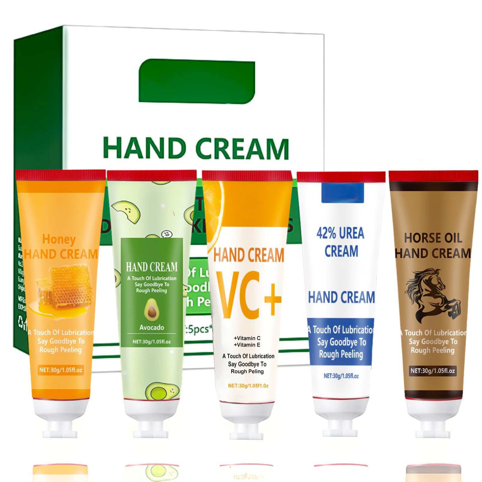 5 PCS with 5 different flavors create a different mood and surprise every day! 5 Seconds To Relieves Dry Feeling,Effectively Nourish and soften skin  Natural hand cream Leave your hands silk, and deep moisturized.Nourishes and hydrates to improve the look and feel of dry and cracked hands. Non-greasy, fast-absorbing, delivers long-lasting hydration.  Mini travel size hand moisturiser compact and lightweight, easy to carry, does not take up space, ideal for you to carry at any time. Mini travel size hand cream is small and lightweight, easy to carry, does not take up space, very suitable for you to carry at any time.   ??Mini Hand Cream Multipack Features: ??-A variety of scents for you to choose from ??-Lightweight and non-greasy texture, absorbs quickly ??-Hydrating and clear, good hydration effect ??-Natural formula, nourishes and smooths your hands ??-Excellent gift ????PACKAGE INCLUDED: -1 * Orange Hand Cream 30g -1 * Honey Hand Cream 30g -1 * Avocado Hand Cream 30g -1 * Horse Oil Hand Cream 30g -1 * UREA Hand Cream 30g  HOW TO USE: STEP1 Wash hands and squeeze out a pea-sized amount of hand cream. STEP2 Cross the palms and massage the back of the hands. STEP3 Smooth until the hand cream is absorbed finish.  NOTE: 1. Store the hand creams in a cool place and out of reach of children. 2. Hand cream is for external use only and should not be consumed. 3. Do not use on wounds. 4. For more pronounced results, use consistently. Our Shop Best Service For You: 1. We provide you with a variety of trustworthy and high-quality products, and l hope you can buy your favorite products. 2. lf you have any questions, we will reply you within 24 hours. 3. We try our best to ensure that you have a 100% satisfactory shopping experience!    SAFETY WARNING   For extemal use only. Avoid contact with eyes. Keep away from naked fame or direct heat sources.???Unique Gift? Expression of love. The anti aging hand cream gift set is not only suitable for daily use. Beautifully packaged, it is the perfect hand cream gift sets for women, especially for the coming Winter. When you think of your hands needing care and moisturizing, you can immediately think of the IZBEAUVO hand lotion set with better price and better quality. ???Easy to Carry?Mini travel size vegan hand cream is small and lightweight, easy to carry, you can put it in your bag, makeup bag, etc., convenient for you to use and apply. Because travel hand cream doesn't take up much space, it's perfect for traveling. ???Absorbs quickly? Our moisturizing hand creams with Plants & fruits essence which The mini hand moisturiser absorbs quickly and leaves no greasy film. Its moisturizing can reverse the worst effects of winter like working cracked hands and makes dry skin smooth supple. ???Long-lasting Deep Moisturizing?Moisturizing hand cream contains a fresh, high quality formula, rich in moisturizing factors, hydrating and clear, hydrating effect, moisturizing your hands. handcream also can lighten your hand lines, so that the skin of your hands more delicate and smooth delicate. ???Includes 5 Luxurious Scents?Five natural botanical flavours including Honey-Avocado-VitaminC-Urea-Horse Oil. There are 5 different natural hand cream scents to choose from. Hand creams all have Gorgeous Fragrance, choose the scent you want to get soft, beautifully moisturised hands.