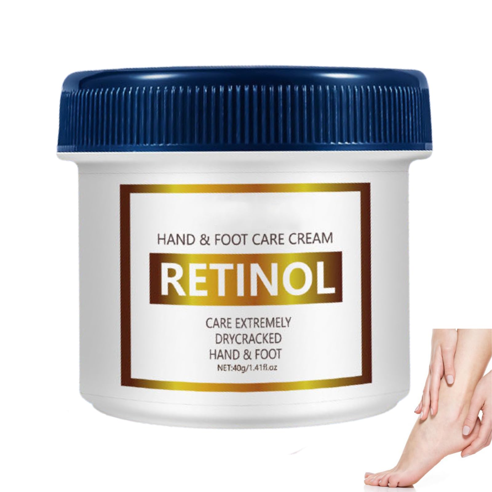 RETINOL HAND & FOOT CARE CREAM is a foot cream for cracked heels and dry skin,which is a concentrated moisturizer that relieves, and repairs extremely dry, cracked feet. When your hardworking hands & feet need hardworking skin care, that's a job for RETINOL FOOT CARE CREAM. Features: ?Deeply Moisturizing your feet and rehydratesskin to a healthy appearance. ?Effectively removes painful calluses, rapidly. ?Improving softness, increase circulation andpreventing water loss. ?Gently exfoliates dead skin and promote newcell growth. ?Refreshing your skin and giving it a naturaland pleasant fragrance. Let's use this cracked heel repair cream every day to get a beautiful pair of feet Instructions: It is for external use only. Keep out of reach of children. Please perform a ear skin test before use. Seek professional suggestion if allergy or irritation occurs. Store in a dry and cool place, avoid direct sunlight and keep away from any high temperature. SPECIFICATION Product Name: RETINOL HAND & FOOT CARE CREAM Net Content: 40g/ 1.41 fl.oz Shelf Life: 3 Years Skin Types: Suitable for All Skin Types Storage Method: In a Cool and Ventilated Place SAFETY WARNING For external use only. Avoid contact with eyes. Keep away from naked flame or direct heat sources.?Rapid Absorption Foot Cream?Our foot cream for very dry feet absorbs quickly and fully into your skin, leaving no greasy film after application.The foot callus remover for cracked heels and dry skin, it makes your feet happy without blocking pores. ??Soothe Aching Feet?Our anti fungal cream and cracked skin repair cream helps fight Inflammation, swelling, infections, and more.This athletes foot cream has antifungal and antibacterial properties to help remedy fungal infections, skin peels, and is suitable for athletes. ??Improving Foot Skin Issues?For common problems such as hard skin, calluses, and corns in the feet, foot care cream can penetrate deeply, effectively soften the keratin.This foot cream for very dry feet improve the texture of the foot skin, and alleviate the condition of thick and hard skin. ??Exfoliation and Softening?Our feet hard skin remover targets the characteristics of feet that are prone to hard skin and calluses.This cracked heel repair cream contains gentle exfoliating ingredients that can remove keratin, soften dead skin, and make the skin of the feet soft and smooth. ??Nourishes Dry Feet?This retinol foot cream hydrates softens and soothes dry dry,cracked, rough, bumpy, and aged feet with shea butter.Our foot moisturiser locks in Moisture and creates a protective layer on the skin's surface that instantly boosts moisture levels and helps prevent further moisture loss.