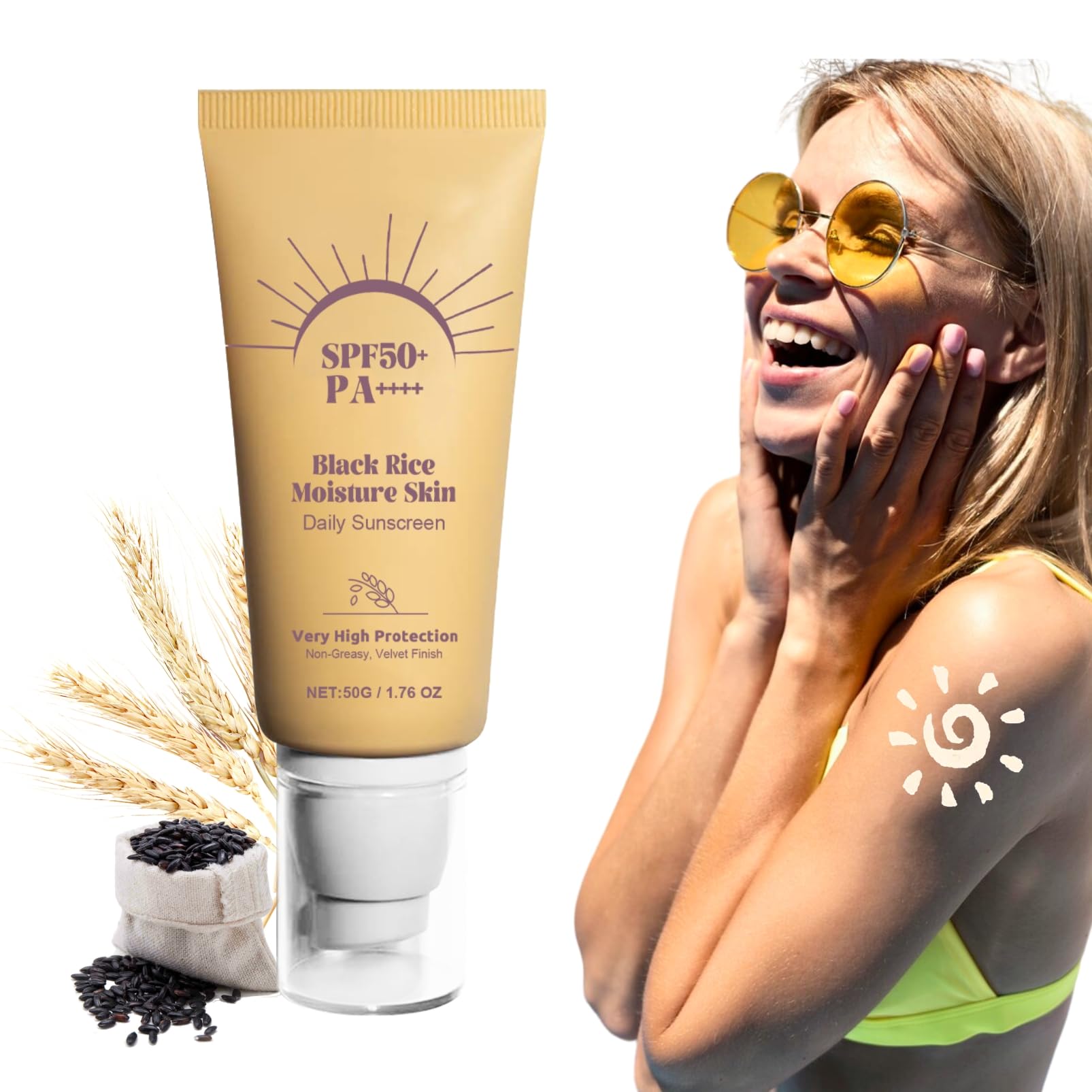 Tired of the greasy feeling that comes with heavy face suncream on a hot summer day? ?? Worried that the chemical-sunscreen ingredients on the market are harming your delicate skin? ?? Afraid of uneven skin tone and sun spots creeping in after outdoor activities? ?? Black Rice Sunscreen - your ultimate summer skincare sunscreen, so the sun doesn't have to be a problem for your beauty! ?PRODUCT FEATURES: ? Rice Sunscreen Spf 50 Sunscreen With Rice Extracts - Natural ingredients infused with rice extract provide broad spectrum UVA/UVB sun protection while nourishing while nourishing and revitalizing the skin, making it perfect for all skin types, especially sensitive skin. ? NON-PORE-CLOGGING & NON-COMEDOGENIC - this hyaluronic acid watery sun gel provides powerful face and body sun protection without the need for heavy coatings, making it ideal for daily sun protection and protection during outdoor activities. ? MOISTURIZE & PREVENT SIGNS OF AGING - Sunscreen korean not only protects the skin from sun damage, but also helps prevent premature aging caused by harmful UV rays, leaving skin smooth, glowing, and highly hydrated, leaving skin firm and smooth. It helps reduce the appearance of wrinkles and fine lines. ? WATERPROOF FORMULA - provides long-lasting sun protection so you can enjoy your time in the sun without having to worry about reapplication. Protect your skin from harmful UV rays. ? LIGHTWEIGHT - this spf 50 face cream is light and creamy, leaving no greasy or heavy feeling. making it ideal for daily sun protection and protection during outdoor activities. ?SPECIFICATION: Product Name: Black Rice Moisturizing Daily Sunscreen Net Content: 50g Texture: Creamy texture Application: Available all over the body Skin issues: Sun exposure, Sensitive skin Storage Method: In a cool and ventilated place ?USING SUGGESTION: Step 1: Apply the face cream with spf 50+ as the last step of your skincare routine and then before make-up. Step 2: It is highly recommended to apply the sunscreen at least 30 minutes before starting outdoor activities to maximise the effect. Step 3: Reapply the sunscreen for face after periods of swimming, exercise, and towel drying offers. Sun screen is a daily skincare essential, guarding against UV-induced damage like darkening, accelerated appearance of freckles, melasma, and age spots, along with premature aging signs such as dryness, wrinkles, and sagging. As UV-A rays penetrate indoors, consistent use of sunscreen, indoors and outdoors, is vital to curb the onset or worsening of spots and preserve youthful skin. SAFETY WARNING For external use only. Avoid contact with eyes. Keep away from naked flame or direct heat sources.?Not Greasy & Not Sticky?Hyalu cica water fit sun serum absorbs quickly and does not leave white marks on the skin or clothing, giving a smooth, bare skin feel. After cleansing and toning, apply appropriate sunscreen spf 50 for face&body evenly, spread it out as if creating a barrier. ?Moisturizing?This rice protection cream face not only provides effective sun protection, but also keeps moisture on the surface of the skin, so that the skin will not dry out and protect the skin more effectively against UV damage. Moisturizing sunscreen is suitable for sensitive skin, dry skin, oil skin. ?Waterproof?Before you need to reapplyspf 50 sunscreen cream face, provide long time waterproof, sweat-resistant UV protection during outdoor activities such as water sports to prevent moisture and sweat. This face spf 50 sunscreen is lightweight,strong protection and easy to carry, so you can use it anywhere. ?Sunscreen Serum?This back rice face cream has a sun protection index of SPF 50+ PA+++, Niacinamide helps decrease hyperpigmentation and brighten skin tone, while Hyaluronic acid provides hydratio,which can effectively prevent skin tanning,pigmentation and skin barrier and effectively prevent sunburn caused erythema and blisters. ?Rice Sunscreen? rice sunscreen, 50ml rice sunscreen korean sunscreen is added with rice extract, which can effectively nourish, hydrate and smooth the skin, while providing additional sunscreen protection. It can not only protect your skin from the sun, but also play a dual role of moisturizing.