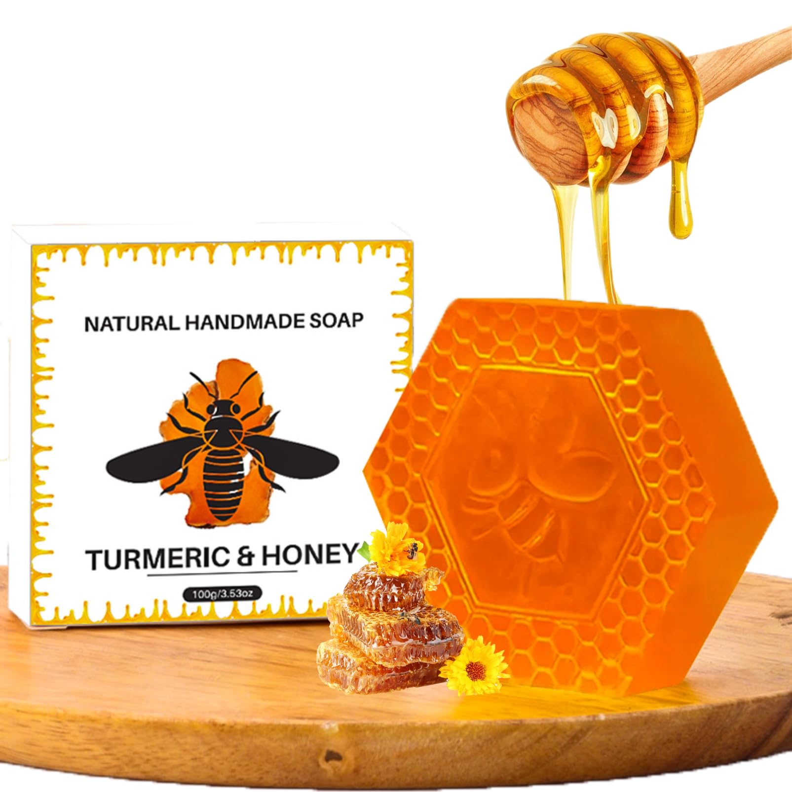 IZBEAUVO Turmeric Honey Soap Bar Soap Bar Natural Soap Moisturising Handmade Soap Bath Soap Natural Soap For Moisturizing Shrinking Pores Cleaning Skin Acne Soap Ginger Extract Soap 100g
