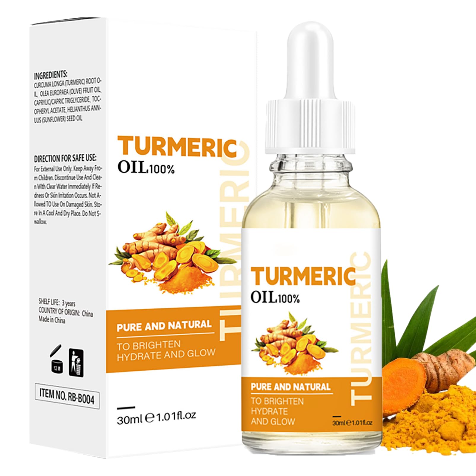 This turmerics essentialss oil reduces hyperpigmentation, freckles, sun spots, discolouration, age spots, fine lines and wrinkles, improving uneven skin tone on the face and body for a radiant glow.Turmeric contains antioxidants and anti-inflammatory components which helps heal dry, damaged, stressed, and uneven skin, making it a trusted formula for improving skin health and reducing hyperpigmentation.Turmeric Dark Spot Corrector Serum is not just for the face but is also effective for dark spots on the elbows, knees, underarms, and other parts of the body. Turmerics Dark Spot Corrector Oil Features: Reduces hyperpigmentation and dark spots Moisturizing, hydrating, reducing acne Anti-wrinkle and anti-aging, restore skin Refine large pores, minimize scars & cleanse age spots. Reduce the appearance of blackheads Specification: Color: light yellow Specification: 30ml State: Liquid Efficacy: anti-aging, repairing, thinning fine lines How to Use: Step 1: Wash your skin with water to remove any dirt particles deposited on it and dry it; Step 2: Take 2-3 drops of dark spot corrector remover in your clean palm and apply it to your skin; Step3: Gently massage your fingertips until the skin is completely absorbed; Step 4: Follow up with your favorite moisturizer; For best results, it is recommended to use it morning and night. Use it daily to get fast results ????Package Included: 1pcs * Turmeric Oil(30ml) ?????This turmeric antioxidant serum hydrating and refreshing facial serum oil 30ml is very suitable for giving to them on Thanksgiving, Christmas and other holidays. SAFETY WARNING For external use only. Avoid contact with eyes. Keep away from naked flame or direct heat sources.✓?Suitable For All Skin Types?Turmeric oil facial serum is not just for the face but is also effective for dark spots on the elbows, knees, underarms, and other parts of the body. Apply into the desired area. Drop an appropriate amount of turmeric serum into your palm. Massage in circular motions until absorbed. ✓?Suitable For All Skin Types?The turmeric oil for face is suitable for any skin, dehydrated or dry skin, dull skin, oily skin and acne prone,or aging wrinkled skin.Recommended to use turmeric serum for dark spots remover every morning and evening for better effects. ✓?Plumping & hydrating? The turmeric dark spot corrector serum oil has been known for years for its medicinal properties that work as a great skin nourishing agent. Face serum Combine it with carrier oil which works as a base for essential oils. and enhance skin elasticity and moisturizing skin . ✓?Anti Aging & Wrinkle?Turmeric oil for dark spots contains Turmeric Vitamin C and other ingredients that effectively fight skin oxidation, lifting and firming the skin, slowing down the aging process, and helping to eliminate fine lines and wrinkles that occur with age. ✓?Dark Spot Removal?Turmeric facial oil effectively lightens dark spots and discolouration.turmeric oil is minimize age spots, hyperpigmentation, and brightens the complexion, improves dull skin and evens out skin tone.