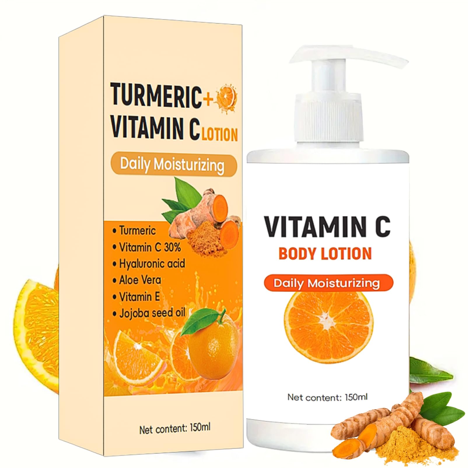 Have you always dreamed of having a beautiful, even skin tone?  -Our vitamin c & turmeric body lotion leave you have that flawless, airbrushed look and a smooth, even tone. This turmeric body lotion with Vitamin C can be used to improve your skin appearance on your face, around your eye, neck, hand and body. Safe for all skin types, including oily and sensitive skin.  BODY LIGHTENING TURMERIC LOTION FEATURES ?ENRICHING FORMULA Our moisturiser body lotions combines natural ingredients to deeply nourish and moisturize your skin. ?TURMERIC'S BENEFITS Turmeric and kojic acid , known for its skin-brightening properties, combines with vitamin C to give your skin a radiant glow. ?NON-GREASY TEXTURE Enjoy a smooth and non-greasy application experience with our turmeric and vitamin C body lotion. ?SUITABLE FOR ALL SKIN TYPES This body moisturisersis suitable for all skin types, providing gentle yet effective moisturization. USAGE METHOD  Take out the appropriate amount of vitamin c body lotion and apply to the desired area, massage until absorbed.body moisturisersbody moisturisers  MATTERS NEEDING ATTENTION 1. Turmeric vitamin C body lotion women should be stored in a cool, dry, light-free environment, avoid direct sunlight and high temperatures. 2.Allergy testing is recommended before using new moisturiser for dry skin products.  ????PACKAGE INCLUDE 1Pcs 150g Vitamin C & Turmeric Body Lotion    SAFETY WARNING   For external use only. Avoid contact with eyes. Keep away from naked flame or direct heat sources.? Multi-purpose ? Kojic acid lotion can be used in different parts of the body, smeared on the face, legs and back, for particularly dry or rough parts, such as elbows, knees, etc., Brightening body lotion for dry skin is suitable for dry and sensitive skin and all skin types. ?Invigorating Citrus Aroma?Vitamin c cream immerse yourself in the vibrant and energising scent of orange zest, enriched with notes of sweet orange and Kojic Acid, for a refreshing sensory experience with every application. ?Quick Absorption? This plant-based vitamin c lotion is light and non-greasy, and the quick absorption formula makes the essence quickly moisturized after entering the skin, making your skin look smoother and more elastic. Our Vitamin C turmeric cream for men women can effectively reduce skin peeling, dryness and itching. ?Deep Moisturizing?Turmeric body moisturiser for dry skin is a body care product that every woman must have. Contains vitamin C, a deep moisturizing essence. Vitamin c body lotion is non-greasy and deeply moisturizes the skin, making your skin feel soft and smooth and full of vitality and moisture. ?Achieve All-Day Radiance?Experience our body moisturiser can accelerate the repair process of skin cells, that promotes a balanced, more even tone & a healthy glow, and other blemishes.Using body lotion bid farewell to skin imperfections and achieve even, glowing skin.