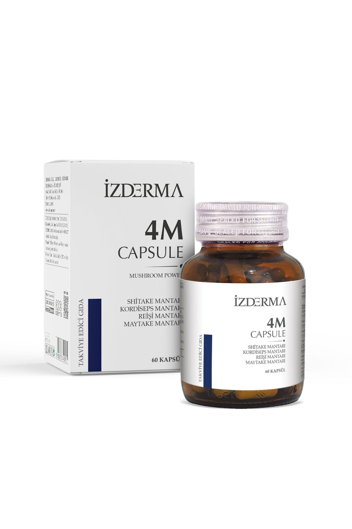 Izderma 4M, Shiitake Mantari (Lentinula edodes), Kordiseps Mantari (Cordyceps sinensis L.) ,Reisi Mantari (Ganoderma lucidum) ve Maytake Mantari (Grifola frondosa) içeren kapsül formatinda 60 kapsül takviye edici gidadir. Bitkisel kökenlidir. Dogal bagisiklik sistemini destekleyici olarak tasarlanmistir.