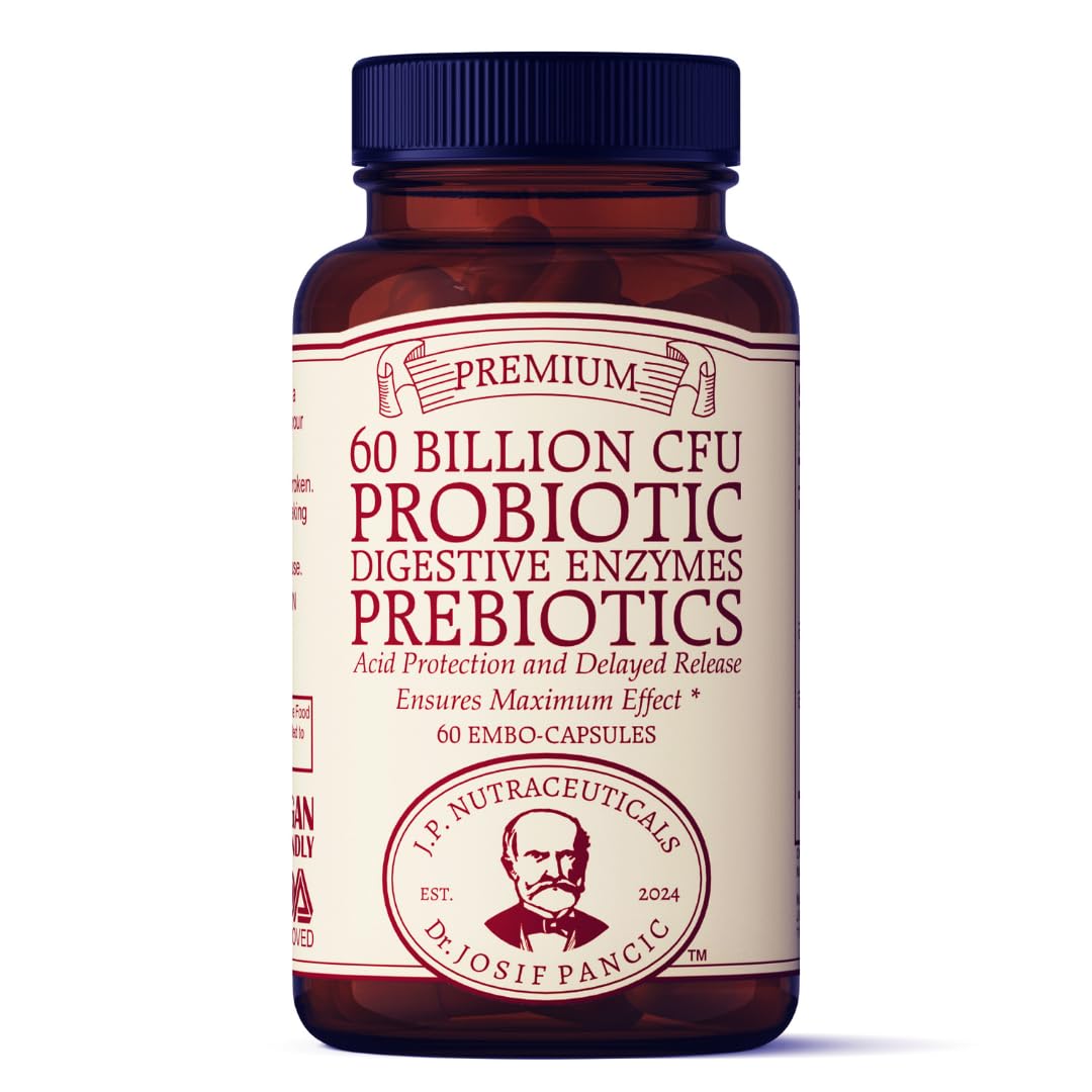 J.P. Nutraceuticals Dr. Josif Pancic Probiotic and Prebiotic Supplement 60 Billion CFU Digestive Enzymes Acid Protection Delayed Release 60 Capsules 60 Day Supply