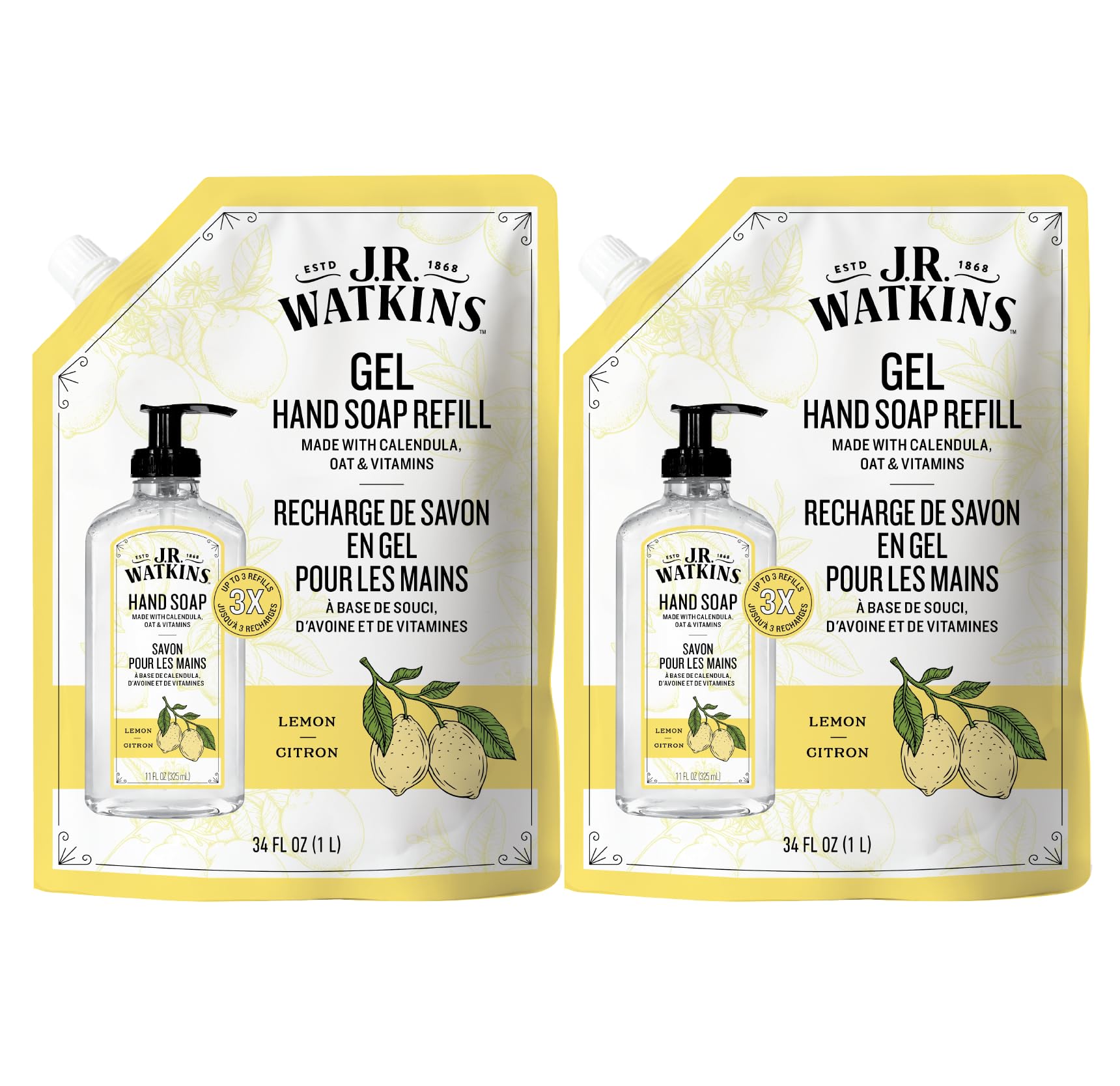 J.R. Watkins Gel Hand Soap Refill Moisturizing Hand Wash Formulated with Plant-Based Cleansers Alcohol-Free Cruelty-Free Lemon 34 Fl Oz 2 Pack Lemon 34 Fl Oz (Pack of 2)