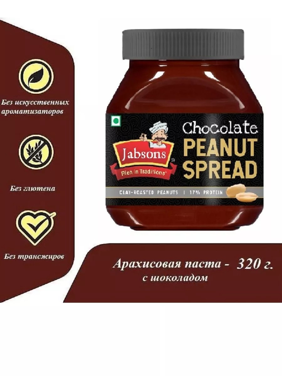 Арахисовая шоколадная паста Peanut Spread от крупнейшего индийского производителя Jabsons Food - новинка на российском рынке. Полностью натуральный продукт, сделанный из лучших индийских орехов, очень популярное лакомство для детей и взрослых, вкусняшка на каждый день. По консистенции как крем, вкуснее чем конфета, богата протеином, рекомендуем с чаем или кофе. Можно слегка подогреть в микроволновке и сделать торт, печенье.