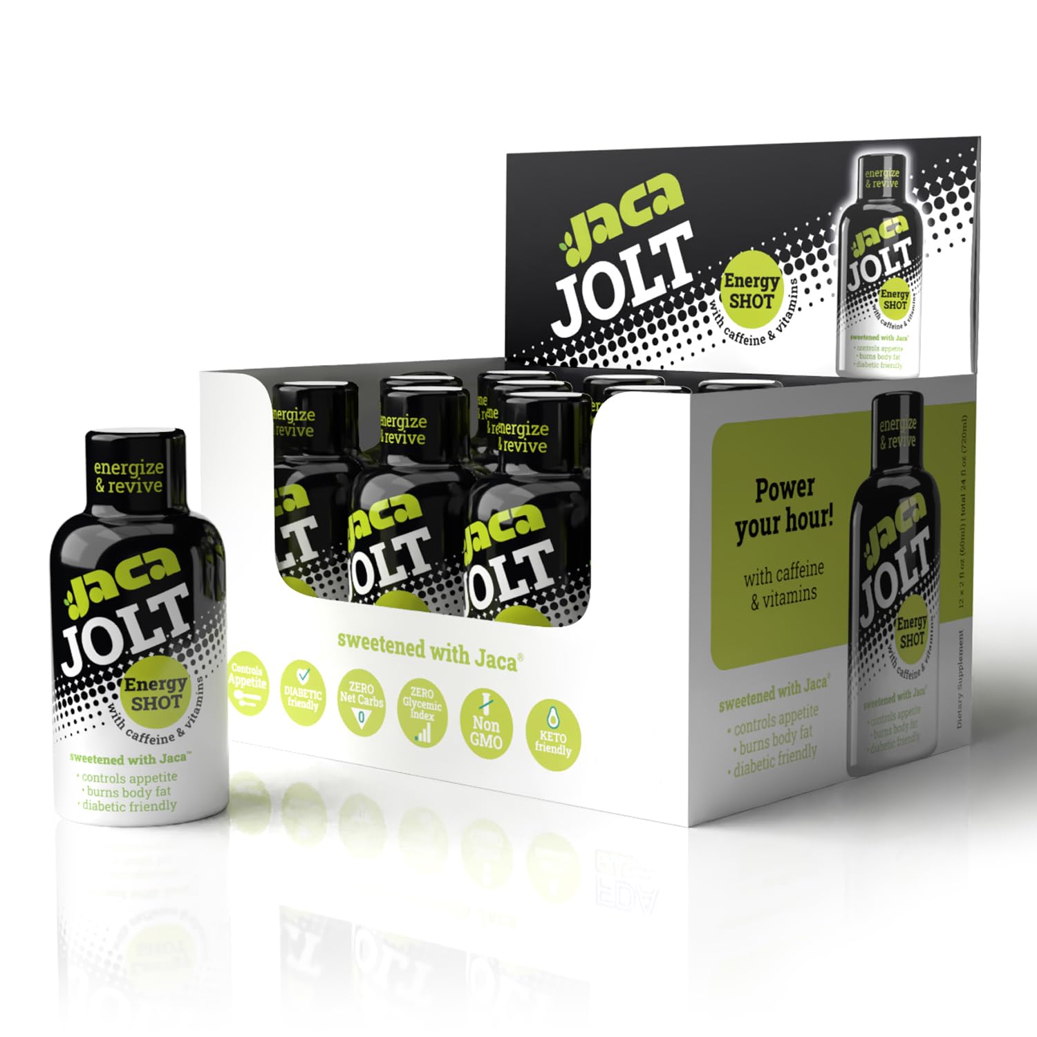 Jaca Jolt Energy Shot | Sweetened with Jaca | Liquid Energy Boost with Caffeine B6 & B12 Vitamins | Diabetic-Friendly Wellness Drink | 2 oz Bottles Pack of 12
