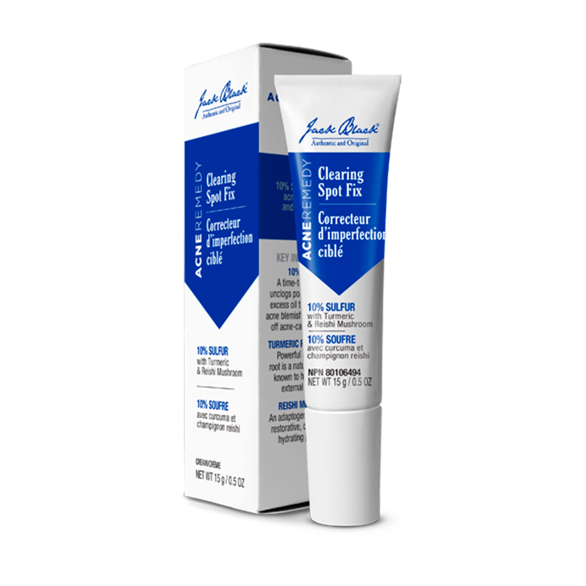 Jack Black Clearing Spot Fix is the perfect acne clearing treatment for smooth, flawless skin. INGREDIENTS Water, C12-15 alkyl benzoate, glycerin, caprylic Capric triglyceride, Acacia Senegal gum, Glyceryl Stearate, PEG-100 stearate, magnesium aluminum silicate, pentylene glycol, Ganoderma Lucidum (Mushroom) Extract, Curcuma Longa (Turmeric) root. carat. Bisabololololen. , Aloe Barbadensis Leaf Juice , sodium PCA, magnesium chloride, sodium chloride, potassium chloride, zinc chloride, lysine, camellia sinensis leaf extract , sebacic acid, isohexadecane, tetrasodium glutamate diacetate, 10-hydroxydecanoic acid, 1. 10-decan-ediol, sodium zinc, acryloyldimethyl taurate, copolymer, butylene glycol, decylene glycol, sodium acrylate sodium acryloyldimethyl taurat copolymer, xanthan gum, polysorbate 80, propanediol, sodium hydroxide, phenoxyethanol, ethylhexyl. hexylhyl cerin organic INSTRUCTIONS FOR USE Apply a small amount of the Clearing Spot Fix to the affected areas. Use it twice a day, or as often as needed. Gently massage it into the skin until completely absorbed. Avoid contact with the eyes. See moreEnriched with fermented Reishi mushroom, known for healing, detoxification and moisture. Achieve radiant and flawless skin. It is designed to absorb excess oil, remove acne-causing bacteria and soothe the skin. Removes and treats acne scars and blackheads and promotes skin healing. It is a treatment that contains the highest sulfur content (10 ), a natural mineral that helps fight acne.Jack Black Clearing Spot Fix 15 g acnebehandeling, mee-eters en vlekafstotend, verfijnt de poriën en absorbeert overtollig vet en verwijdert acne veroorzakende bacteriën. Jack Black Clearing Spot Fix is de perfecte behandeling voor het verwijderen van acne voor een gladde, onberispelijke huid. INGREDIËNTEN Water, C12-15 alkyl benzoaat, glycerine, caprylic Capric triglyceride, Acacia Senegal gum, Glyceryl Stearate, PEG-100 stearaat, magnesium aluminum silicate, pentyleenglycol, Ganoderma Lucidum (Mushroom) Extract, Curcuma Longa (Turmeric) root. karaat. Bisabololololen. , Aloë Barbadensis Leaf Juice , natriumPCA, magnesiumchloride, natriumchloride, potassiumchloride, zinkchloride, lysine, camellia sinensis bladextract , sebaciczuur, isohexadecane, tetrasodium glutamaat diacetaat, 10-hydroxydecanoic zuur, 1. 10-decan-ediol, natrium zink, acryloyldimethyltauraat, copolymeer, butyleenglycol, decylene glycol, natriumacrylaat natriumacryloyldimethyl taurat copolymeer, xanthaangom, polysorbaat 80, propaandiol, natriumhydroxide, fenoxyethanol ol, ethylhexyl. hexylhyl cerin organisch GEBRUIKSAANWIJZING Breng een kleine hoeveelheid van de Clearing Spot Fix aan op de getroffen gebieden. Gebruik het twee keer per dag, of zo vaak als nodig is. Masseer het voorzichtig in de huid tot het volledig is geabsorbeerd. Vermijd contact met de ogen. Meer bekijkenVerrijkt met gefermenteerde Reishi paddenstoel, bekend om genezing, ontgifting en vocht. Bereik een stralende en onberispelijke huid. Het is ontworpen om overtollig vet te absorberen, acne veroorzakende bacteriën te verwijderen en de huid te kalmeren. Verwijdert en behandelt acnelittekens en mee-eters en bevordert de genezing van de huid. Het is een behandeling die het hoogste zwavelgehalte (10 ) bevat, een natuurlijk mineraal dat helpt bij de bestrijding van acne.