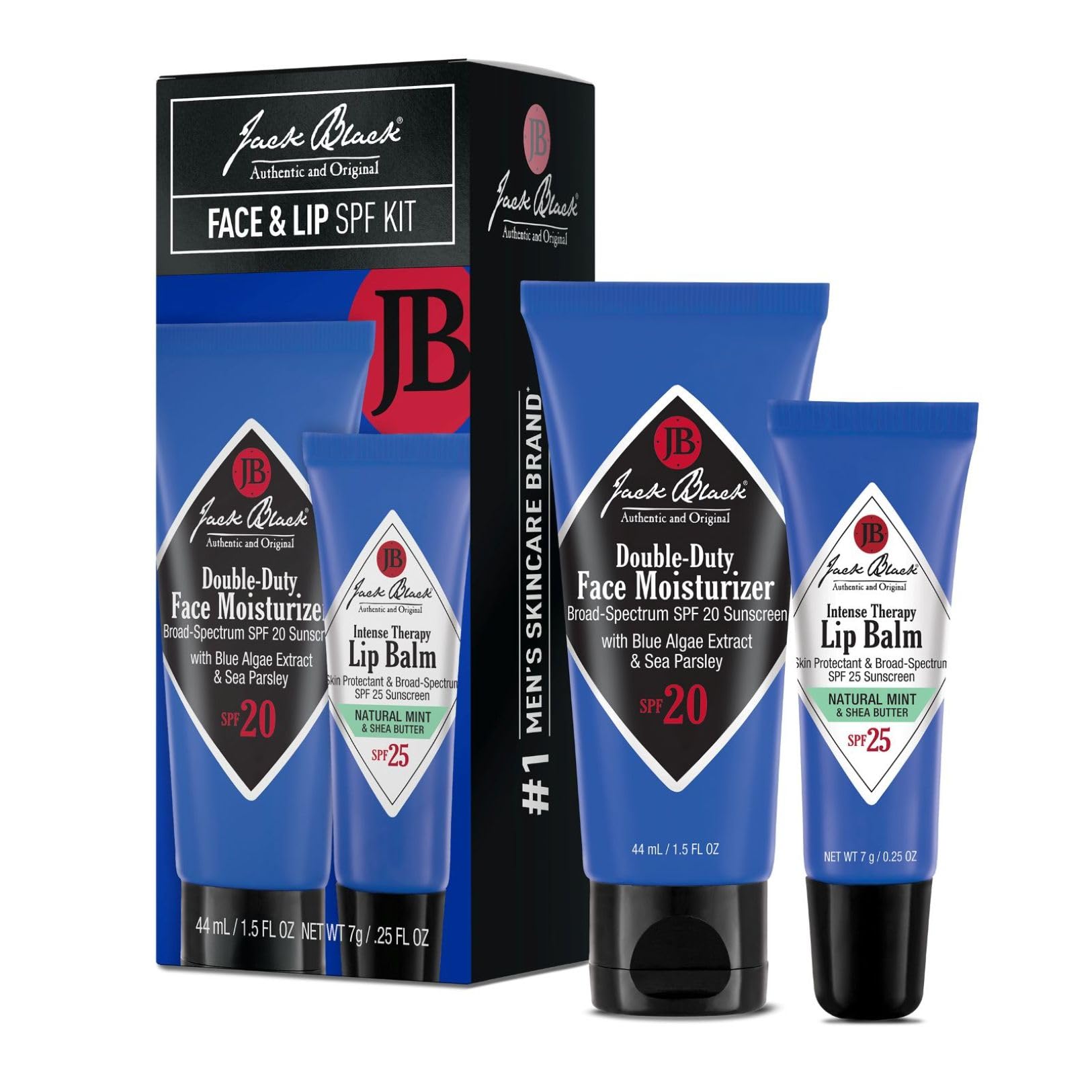 Jack Black Face & Lip Set - Double Duty Facial Moisturizer Face Cream for Men Mens Facial Lotion with SPF + Natural Mint & Shea Butter with Vitamin E Lip Balm SPF 25 Moisturizer Balm for Dry Lips