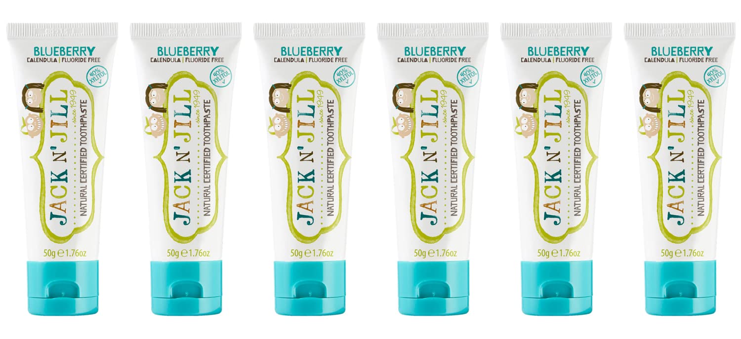 Jack N' Jill Natural Toothpaste for Kids - Fluoride Free Toothpaste 40% Xylitol BPA Free - Blueberry 1.76 oz (Pack of 6)