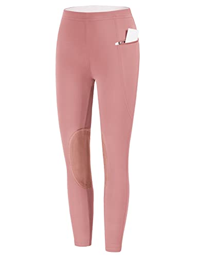 JACK SMITH Girls Riding Pants Kids Equestrian Horse Riding Tights Breeches Youth Knee-Patch Schooling Zipper Pocket Pink 8 Years