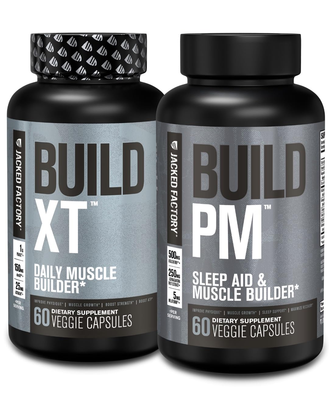 Manufactured in a cGMP-Certified Facility: Unlike many dietary supplements, all Jacked Factory products are manufactured under stringent quality control standards to ensure proper purity and potency. This formula is completely free of harsh chemicals, fillers, artificial food dyes. Supports Deep Sleep: Build PM helps reduce restlessness & experience a better nights sleep after working out. Wake up without the “groggy” feeling caused by many sleep-aid supplements & conquer your next workout with ease. Formulated with Tart Cherry, Ashwagandha, Melatonin, L-Theanine, & more. Unlock Peak Performance: Elevate your workouts with Build-XT, powered by Peak02 mushroom complex. This adaptogenic marvel enhances endurance, allowing you to push your limits and train harder. Build Hard, Lean Muscle: A hard-hitting muscle builder for men and women and scientifically-formulated bodybuilding recovery supplement using science-backed ingredients. Build PM enables lean muscle growth, strength gains, & better endurance, while improving the most important tool you have…sleep!. No Miracle, Just Maximization: Build-XT is a powerful supplement that amplifies your efforts in the gym. Remember, no supplement can replace effective training and nutrition, but Build-XT empowers you to push your limits, leading to enhanced muscular gains when combined with your hard work and dedication.