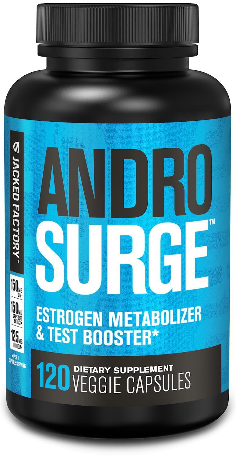 Premium Quality and Transparency: Jacked Factory uses research-backed ingredients, transparent labels, and ensures zero fillers or dyes, delivering pure, effective supplements you can trust. cGMP USA Manufacturing - All Jacked Factory supplements for men and women are manufactured in a state-of-the-art cGMP facility using premium raw materials that are tested for purity, potency, and authenticity. Be confident that each bottle of Androsurge contains precisely what’s on the label. Build Muscle & Increase Strength - Optimize your natural potential with this muscle builder. When paired with a high-protein diet and exercise, Androsurge is an effective workout supplement for men by promoting muscle fullness during your training and reducing muscle catabolism. Energy, Vitality, and Libido - While it’s not a miracle pill, as a mens testosterone supplement Androsurge can help boost your overall energy levels so you can power through your day, workout sessions, & life with a sense of vitality. Increased testosterone can help overall confidence & drive, support stress reduction, and support a relentless alpha drive. Testosterone Supplement w/ Tongkat Ali for Men - Androsurge is a non-proprietary blend of all-natural ingredients designed to act as an estrogen metabolizer for men. Androsurge features researched ingredients such as long jack, grape seed extract, and diindolylmethane (DIM) which make it an effective mens testosterone booster.