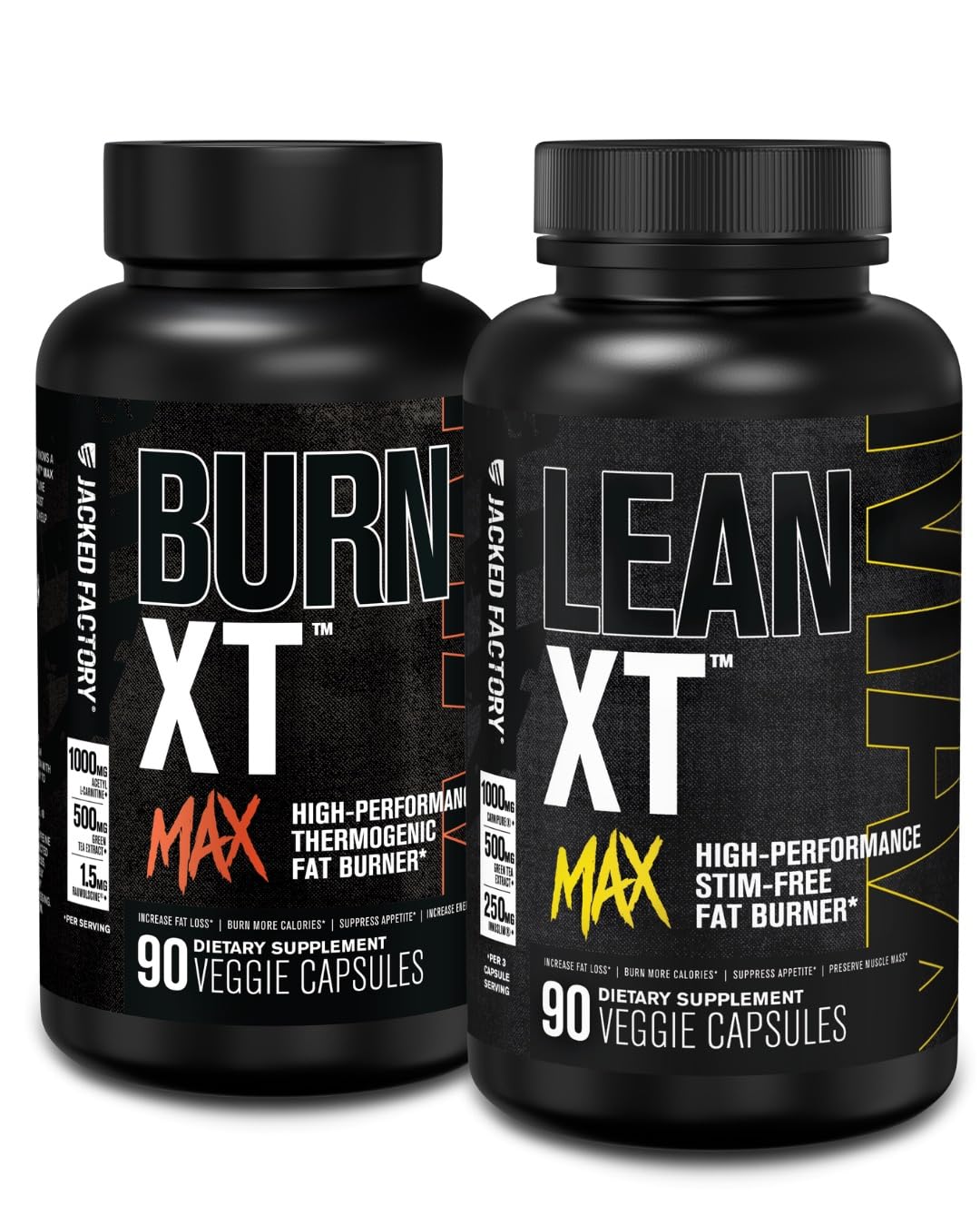 Jacked Factory Burn-XT Max - High-Performance Thermogenic Fat Burner & Appetite Suppressant for Weight Loss (90 Capsules) & Lean-XT Max - High-Performance Stim-Free Fat Burner (90 Capsules)