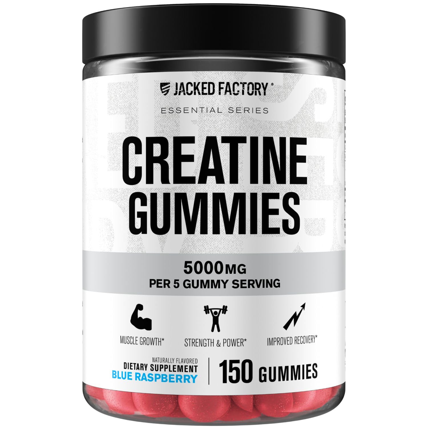 Jacked Factory Creatine Gummies 5g Daily Dose (1g per Gummy) - Creatine Gummy for Men and Women Vegan-Friendly Travel-Friendly Third-Party Tested - 150 Gummies Blue Raspberry Blue Raspberry 150 Gummies (Pack of 1)