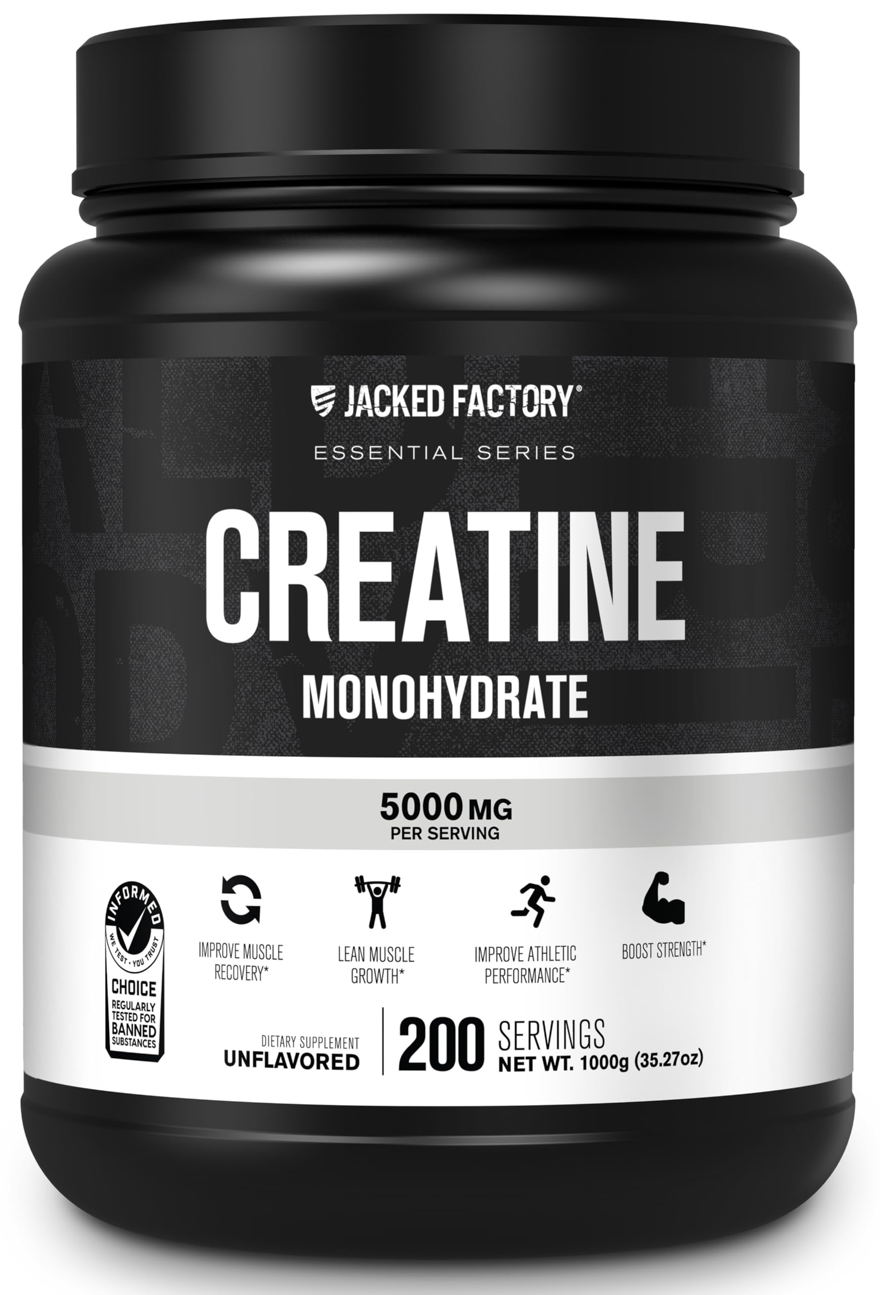 Jacked Factory Creatine Monohydrate Powder 1000g - Creatine Supplement for Muscle Growth Increased Strength Enhanced Energy Output and Improved Athletic Performance 200 Servings Unflavored Unflavored 200 Servings (Pack of 1)