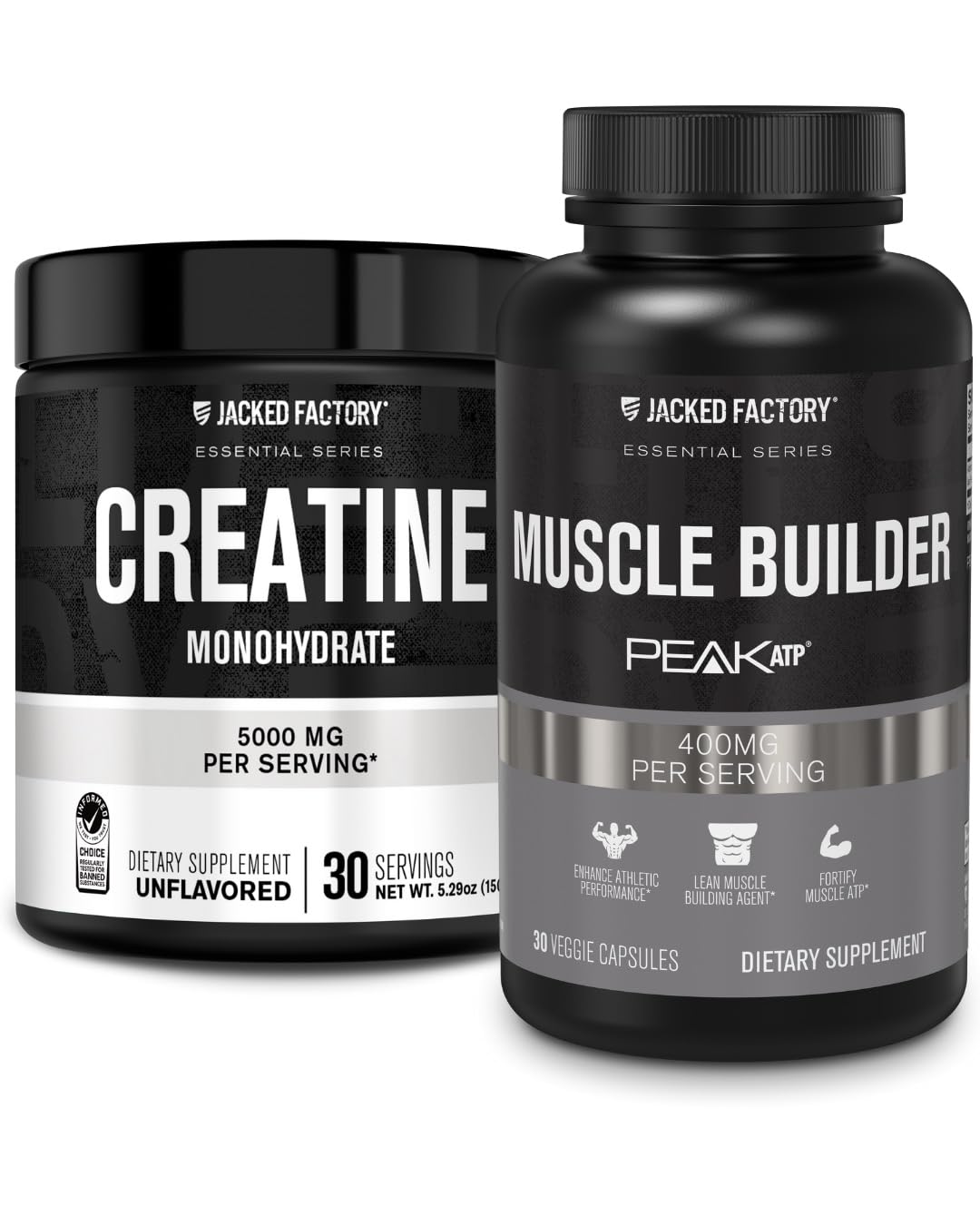 Jacked Factory Creatine Monohydrate Powder 150g - Creatine Supplement for Muscle Growth Increased Strength & Essentials Muscle Builder - Daily Muscle Builder with PeakATP (30 Capsules)