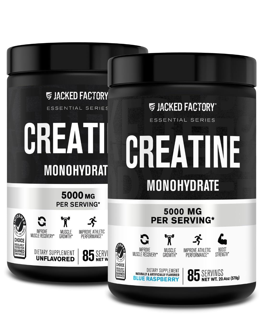 Jacked Factory Creatine Monohydrate Powder 425g (Unflavored 85 Servings) Flavored Creatine Monohydrate Powder 578g (Blue Raspberry 85 Servings)