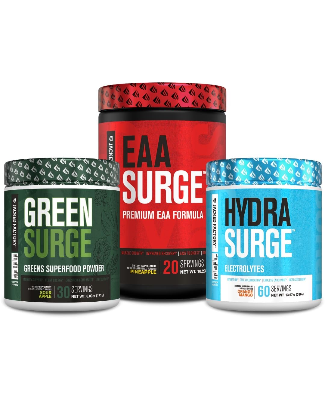Jacked Factory Green Surge Green Superfood Powder Hydrasurge Electrolyte Hydration Supplement EAA Surge EAA Supplement