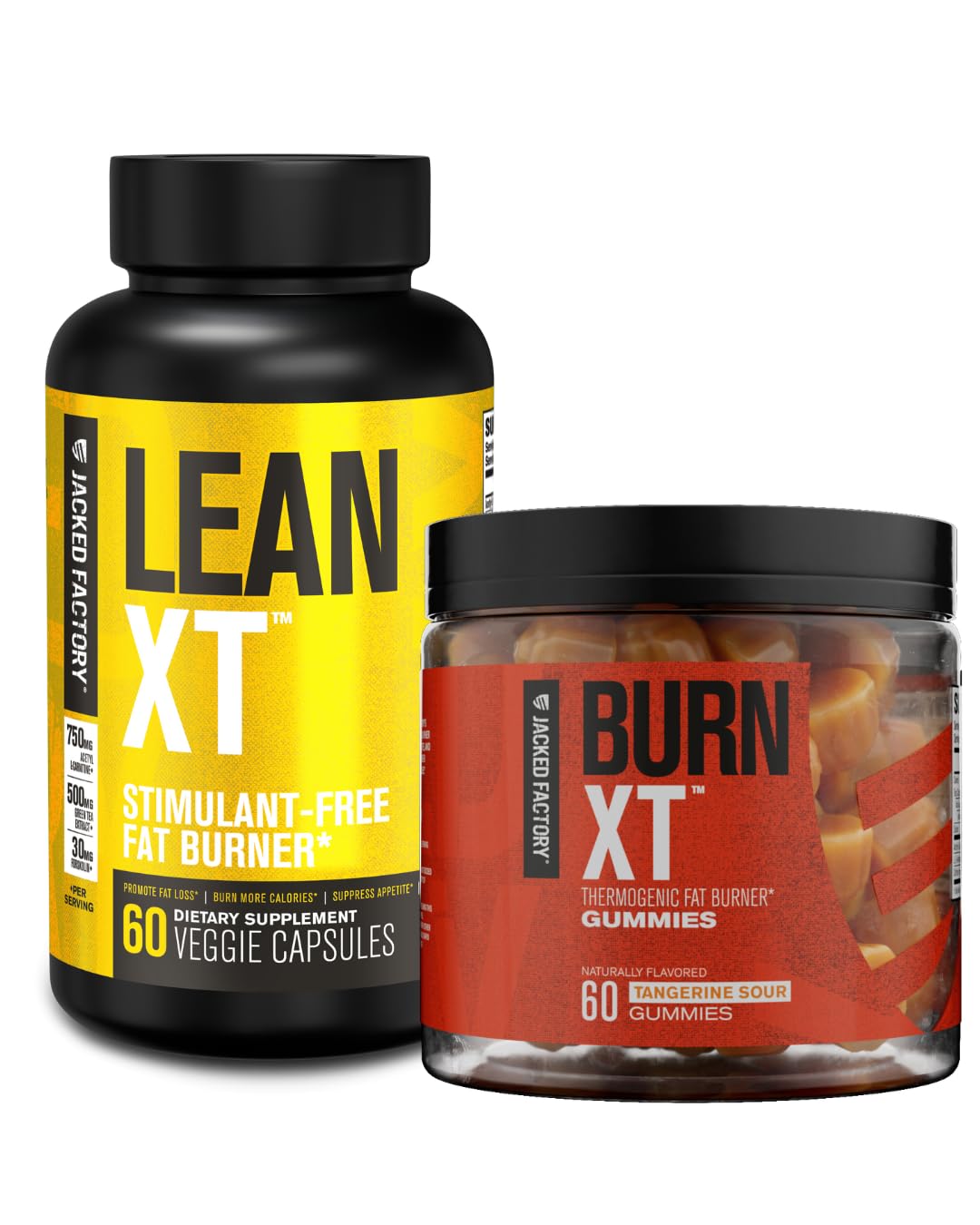 Jacked Factory Lean-XT Caffeine Free Fat Burner - Non Stim Weight Loss (60 Capsules) & Burn-XT Weight Loss Gummies - Thermogenic Fat Burner & Appetite Suppressant Gummies (Tangerine Sour, 60 Gummies)