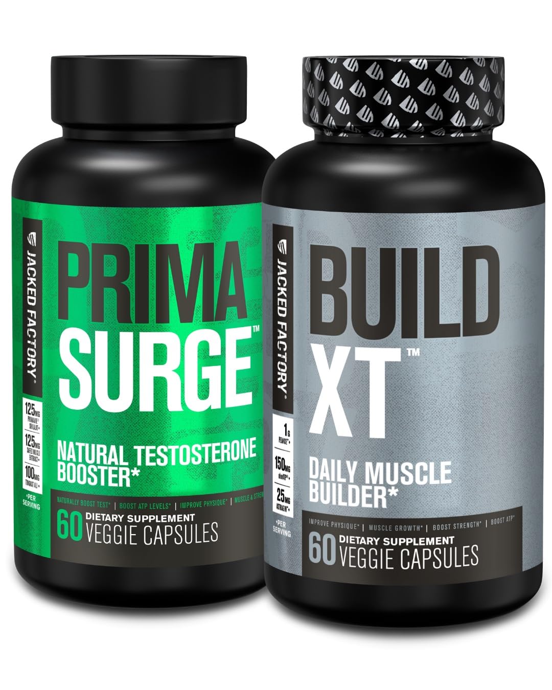Jacked Factory PRIMASURGE Testosterone Booster for Men (60 Capsules) & Build-XT Daily Muscle Builder & Performance Enhancer | Muscle Building Supplements for Muscular Strength & Growth