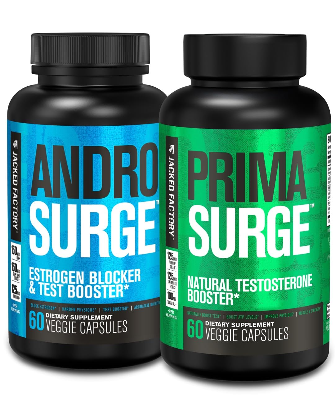 Jacked Factory Testosterone Booster for Men | Estrogen Blocker with Tongkat Ali - Androsurge Anti-Estrogen + Primasurge Natural Test Booster - for Muscle Growth Vitality Energy 30 Day Supply