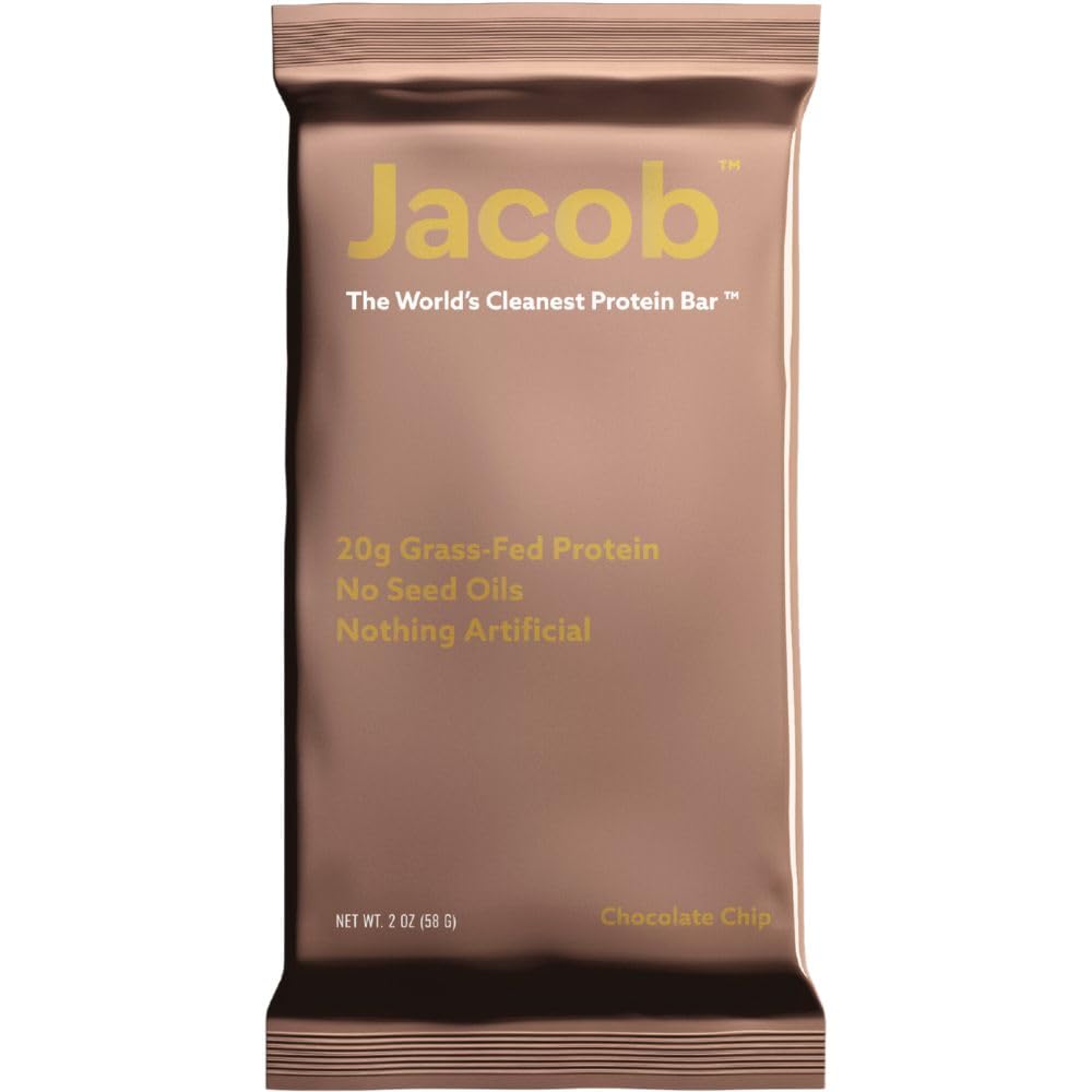CLEAN HIGH QUALITY PROTEIN BARS: Jacob Protein Bars raise the bar on quality and ingredients. 20g of protein makes Jacob bar a fantastic high protein snack option or meal replacement. FOOD WITH HIGHER STANDARDS: Jacob Bar contains no gluten, no soy, no seed oils, no gums, no stevia, no sugar alcohol, no artificial sweeteners, no artificial colors and no preservatives. Just REAL FOOD. REAL CLEAN INGREDIENTS: Jacob Protein Bars are a statement that your health comes first. Because in health lies hope, and with hope the world is yours!. JACOB PROTEIN BARS: Most protein bars are loaded with garbage you don't want in your body, so we created a truly clean and tasty option. 20g of Grss-Fed Protein, No Seed Oils and Nothing Artificial.
