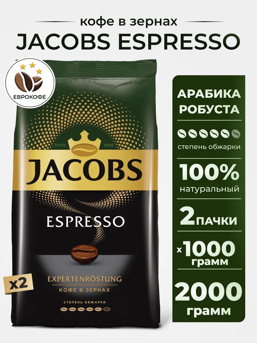 jaCobs Кофе в зернах Якобс Espresso 1кг, 2шт.