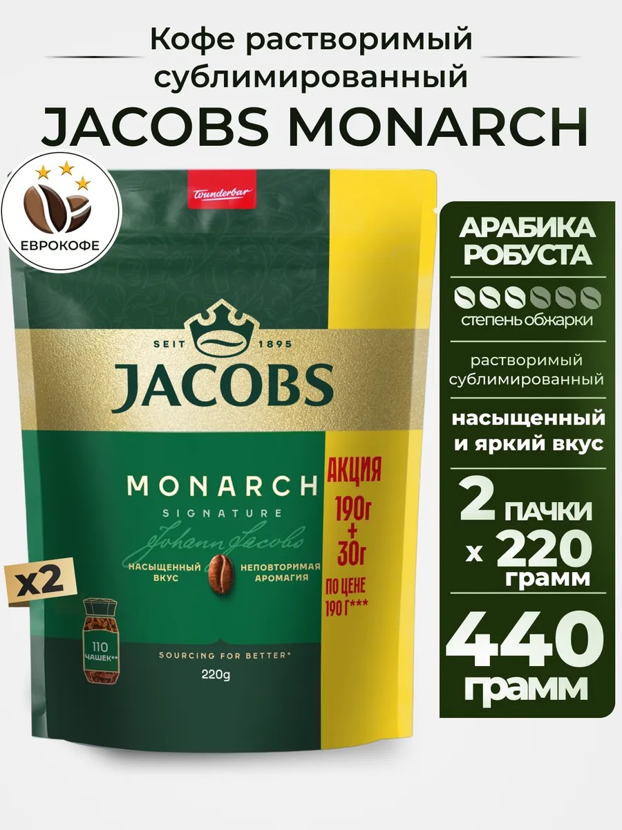 jaCobs Кофе растворимый сублимированный Monarch 220г, 2шт.
