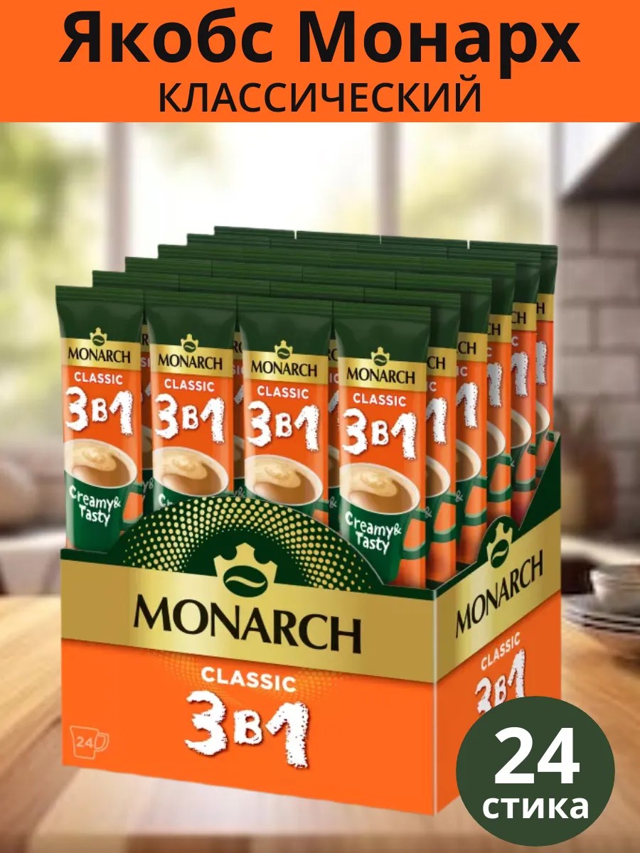 Jacobs Monarch Classic 3-in-1 Coffee Drink, 24 Sachets. Monarch Classic 3-in-1 Instant Coffee (24 Sachets) is designed for those who value their time but aren't ready to give up their favorite flavor. We've packed the energy of coffee into convenient single-serving sticks so you can enjoy the impeccable aroma on the go.