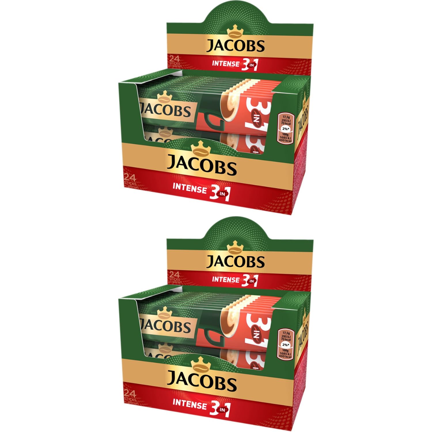 JACOBS Lot de 60 sachets de café instantané 3 en 1 original Latte Caramel Ice Milka Intense 2 en 1 (60, Intense)