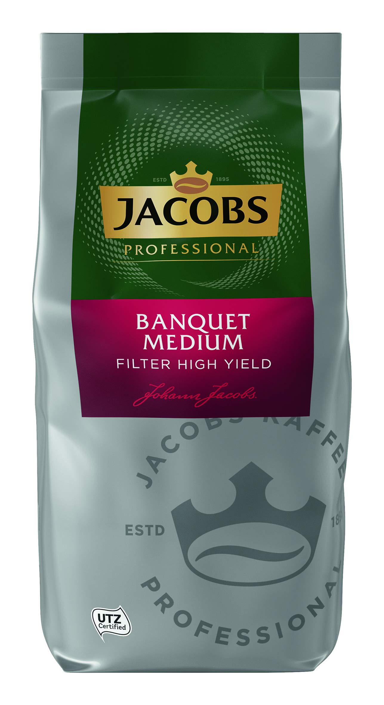 Jacobs Professional Banquet Medium with a special High Yield roast: a balanced filter coffee specially designed for professional use in your business. This ground roast coffee impresses with its carefully selected, high-quality coffee beans. The High Yield roast ensures a high-yield filter coffee that is particularly economical. With its balanced and smooth flavor profile, this coffee is a true classic for all needs. Entirely Fairtrade certified, this filter coffee bears the UTZ label. INGREDIENTS Coffee SAFETY WARNING None See more