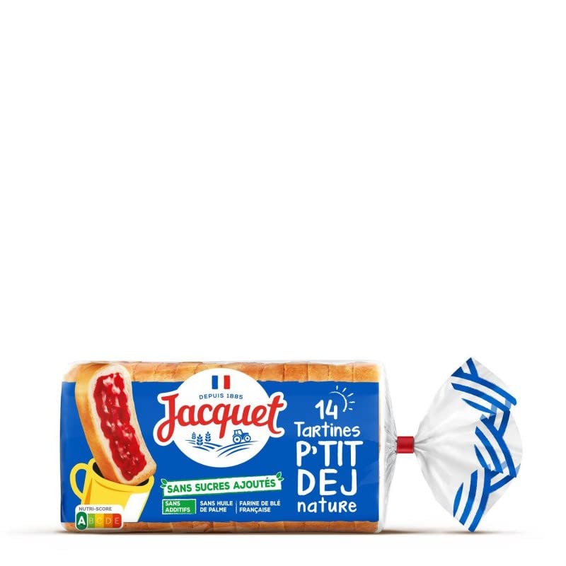 Jacquet Plain No Added Sugar Breakfast Toasts, soft and thin slices of sandwich bread, perfect for dipping in your cup! INGREDIENTS Ingredients: WHEAT flour (71 ), water, rapeseed oil, yeast, natural flavoring (contains alcohol), salt, fermented corn flour, broad bean flour, WHEAT GLUTEN, acerola extract.P'Tit Dej Nature Toast 410g. JACQUET. Sandwich and pre-baked breads. Breakfast. Sweet groceries. Les Tartines P'tit Déj' Sans Sucres Ajoutés Nature Jacquet, des tranches de pain de mie moelleuses et fines, parfaites à tremper dans votre tasse !. INGRÉDIENTS Ingrédients : Farine de BLE (71 ), eau, huile de colza, levure, arôme naturel (contient alcool), sel, farine de maïs fermentée, farine de fève, GLUTEN DE BLE, extrait d'acérola.Tartine P'Tit Dej Nature 410G. JACQUET. Pains de mie et précuits. Petit déjeuner. Epicerie sucrée.