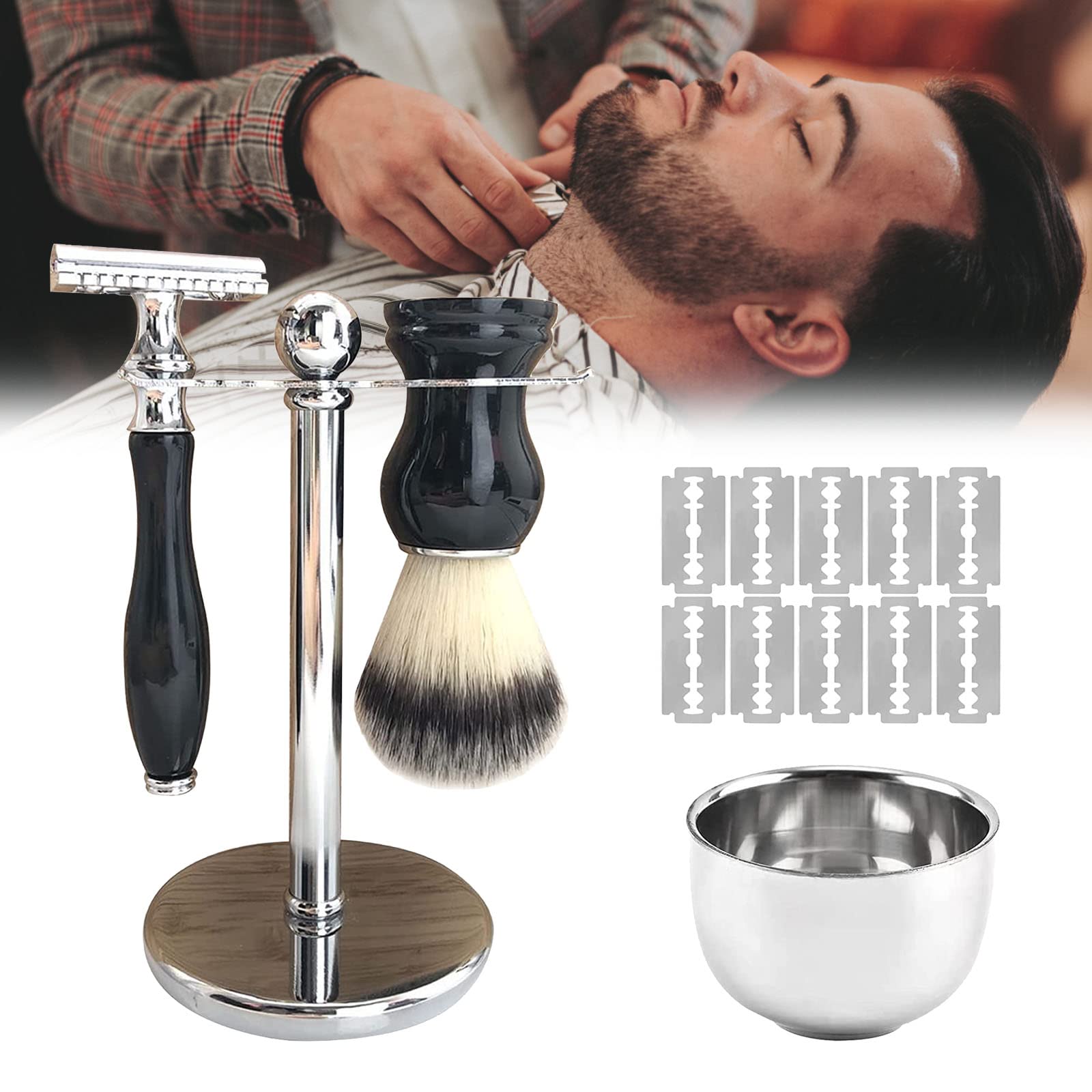 ?? High quality razor planes set This shaving set contains Dachs hairbrush, razor plane, shaving stand, shaving bowl and shaving blades.It can keep your face clean and properly, full of masculine charm. ?? Safety material This shaving brush is made of nylon, which has a strong water absorption and does not injure the skin.The razor and the shaving frame are made of stainless steel, which is durable and not easy to rust. ?? Classic design The manual razor is ideal for personal hair and beard care.The razor blades are double edge for cleaner shaving.The combination of elegant shaving brush roof hair and razor leaves the face smooth and translucent. ?? perfect match A combination of a shaving brush, shaving stand, wet razor and shaving bowl, specially developed for the ergonomics of wet shaving.Whether you use it for home use or as a gift, it is very suitable. ?? Long -term care If the shaving set is adequately maintained, you can use it for many years.It is recommended to replace the razor blades for half a month, and the universal razor fits most razor blades. Specification: 100% brand new and good quality. Material: nylon and stainless steel Color: Black Package: 1 * razor planer 1 * razor brush roof hair 1 * shaving stand 1 * shaving bowl 10 * Replacement razor blades ?Long-term care?- If the shaving set is adequately maintained, you can use it for many years.It is recommended to replace the razor blades for half a month, and the universal razor fits most razor blades.?Perfect match?- a combination of a shaving brush, shaving stand, wet razor and shaving bowl, specially developed for the ergonomics of wet shaving.Whether you use it for home use or as a gift, it is very suitable.?Classic design?- The manual razor is ideal for personal hair and beard care.The razor blades are double edge for cleaner shaving.The combination of elegant shaving brush roof hair and razor leaves the face smooth and translucent.?Safety material?- This shaving brush is made of nylon, which has a strong water absorption and does not injure the skin.The razor and the shaving frame are made of stainless steel, which is durable and not easy to rust.?High quality razor plane set?- This shaving set contains roofs hairbrush, razor plane, shaving stand, shaving bowl and shaving blades.It can keep your face clean and properly, full of masculine charm. ?? Hochwertig Rasierhobel Set Dieser Rasierset enthält Dachs Haarbürste, Rasierhobel, Rasierständer, Rasierschale und Rasierklingen. Es kann Ihr gesicht sauber und ordentlich halten, voller maskulinem charme. ?? Sicherheits Material Dieser Rasierpinsel besteht aus Nylon, das eine starke wasseraufnahme hat und die haut nicht verletzt. Der Rasierer und der rasierrahmen bestehen aus edelstahl, der langlebig und nicht leicht zu rosten ist. ?? Klassisches Design Der manueller rasierer eignet sich hervorragend für die persönliche haar und bartpflege. Die rasierklingen ist doppelkante für eine sauberere rasur. Die kombination aus elegantem rasierpinsel dachshaar und rasiermesser hinterlässt das gesicht glatt und durchscheinend. ?? Perfekte Übereinstimmung Eine kombination aus rasierpinsel, rasierständer, nassrasierer und rasierschale, speziell entwickelt für die ergonomie der nassrasur. Ob sie es für den heimgebrauch oder als geschenk verwenden, es ist sehr gut geeignet. ?? Langfristige Pflege Bei angemessener Wartung des Rasiersets können Sie es viele Jahre verwenden. Es wird empfohlen, die Rasierklingen halben monat auszutauschen, und der universalrasierer passt auf die meisten rasierklingen. Spezifikation: 100% nagelneu und gute Qualität. Material: nylon und edelstahl Farbe: schwarz Paket: 1 * Rasierhobel 1 * Rasierpinsel Dachshaar 1 * Rasierständer 1 * Rasierschale 10 * Ersatz Rasierklingen?Langfristige Pflege?-- Bei angemessener Wartung des Rasiersets können Sie es viele Jahre verwenden. Es wird empfohlen, die Rasierklingen halben monat auszutauschen, und der universalrasierer passt auf die meisten rasierklingen. ?Perfekte Übereinstimmung?-- Eine kombination aus rasierpinsel, rasierständer, nassrasierer und rasierschale, speziell entwickelt für die ergonomie der nassrasur. Ob sie es für den heimgebrauch oder als geschenk verwenden, es ist sehr gut geeignet. ?Klassisches Design?-- Der manueller rasierer eignet sich hervorragend für die persönliche haar und bartpflege. Die rasierklingen ist doppelkante für eine sauberere rasur. Die kombination aus elegantem rasierpinsel dachshaar und rasiermesser hinterlässt das gesicht glatt und durchscheinend. ?Sicherheits Material?-- Dieser Rasierpinsel besteht aus Nylon, das eine starke wasseraufnahme hat und die haut nicht verletzt. Der Rasierer und der rasierrahmen bestehen aus edelstahl, der langlebig und nicht leicht zu rosten ist. ?Hochwertig Rasierhobel Set?-- Dieser Rasierset enthält Dachs Haarbürste, Rasierhobel, Rasierständer, Rasierschale und Rasierklingen. Es kann Ihr gesicht sauber und ordentlich halten, voller maskulinem charme.Jag Shaving Rasierset, Doppelkante Nassrasierer Herren mit Rasierhobel Rasierpinsel Dachshaar Rasierständer Rasierschale und 10 Ersatz Rasierklingen Rasierpinsel Set für Männer