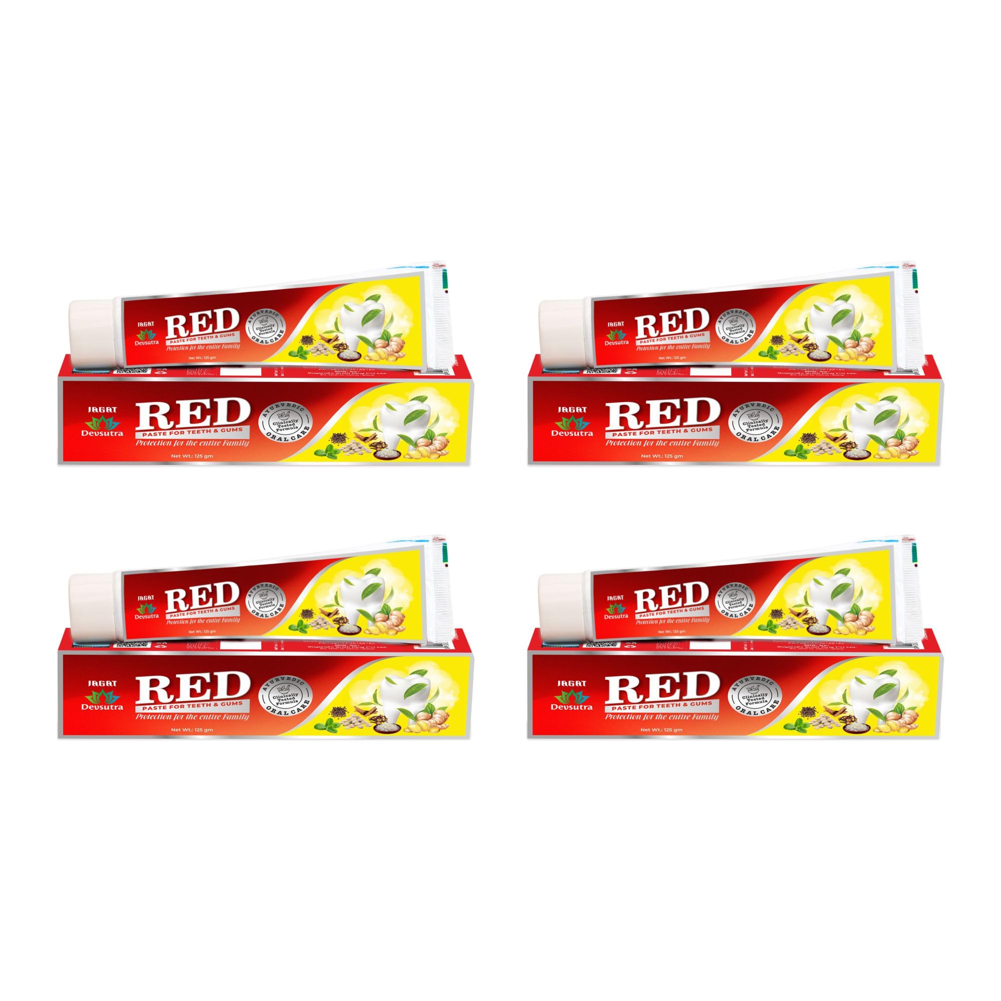 Jagat Herbal Red Toothpaste for Fresh Breathe Doctor Recommended Natural Ayurvedic Toothpaste Organic 100% Natural Teeth Whitening Fluoride Free & Protects Gums Vegan - Pack of 4 Red (Pack of 4)