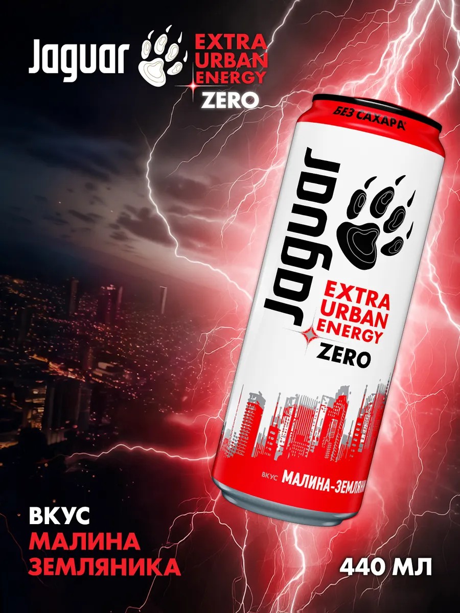 Jaguar Energy Drink Энергетик Урбан Энерджи Зеро малина земляника 0,44 л х12 шт.