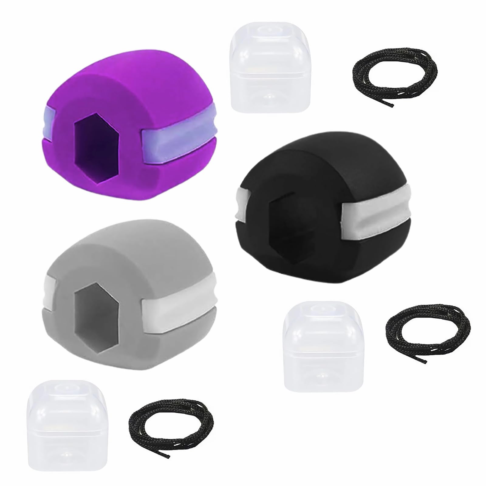 JALCH 3Pcs Jaw Exerciser Face & Neck Muscle Toning - Jawline Training Natural Face Lifting Double Chin Reducer Suitable for Men & Women Comes in Black Grey Purple with Lanyard and Box