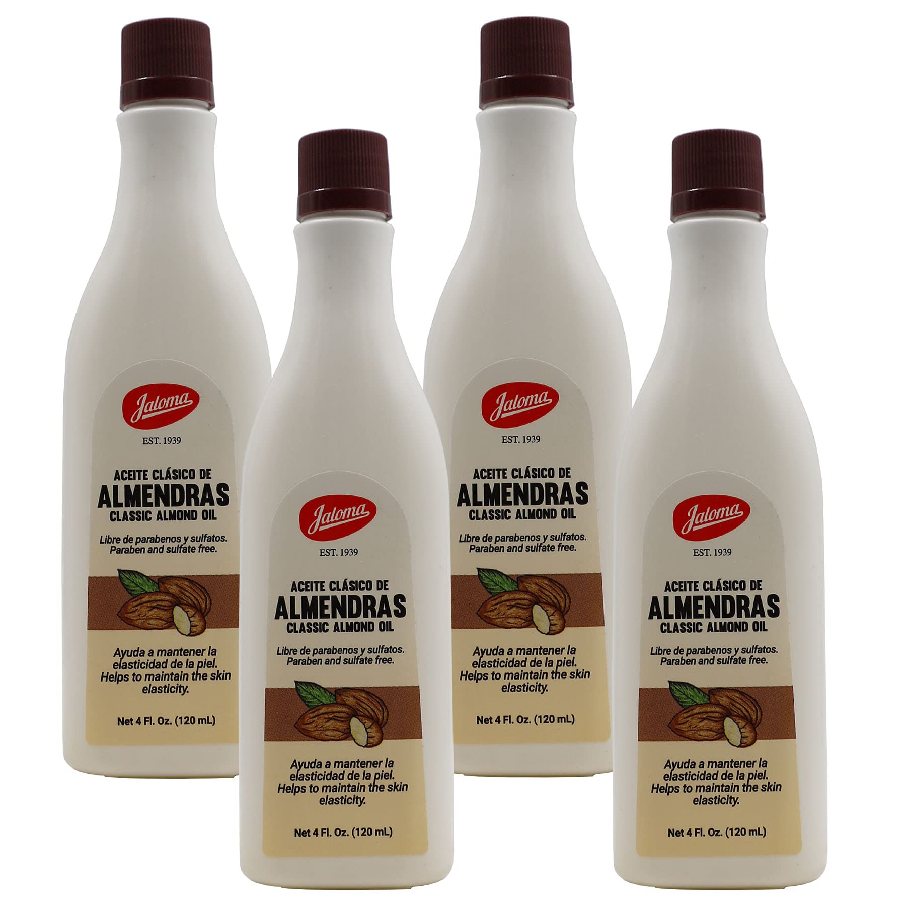 Jaloma Sweet Oil Almond Emollient to Help you Soften your Skin Makeup Remover Delicate and Sweet Fragrance Hair Moisturizer Prevents Stretch Mark All skin type 4-Pack of 4 FL Oz 4 Bottles.