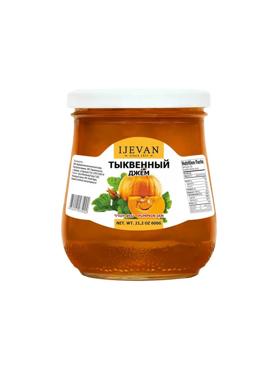 Ароматный и вкусный тыквенный джем Иджеван лучший вариант для всех, кто любит натуральную еду. Продукт произведён по проверенным технологиям, в результате которых тыква сохраняет свою пользу для нашего организма. В тыкве много витаминов В1-В12, C, D, РР, E, Т, K, каротиноиды и клетчатка, минералы фтор, марганец, магний, калий, медь, кальций, цинк, йод. Тыква ускоряет метаболизм, помогает регулировать вес, хорошо влияет на ЖКТ, выводит из организма токсины и холестерин. Большой процент калия помогает улучшить работу сердца и сосудов. Тыква рекомендуется при диабете и атеросклерозе, она полезна беременным и детям. Джем относится к веганским продуктам.