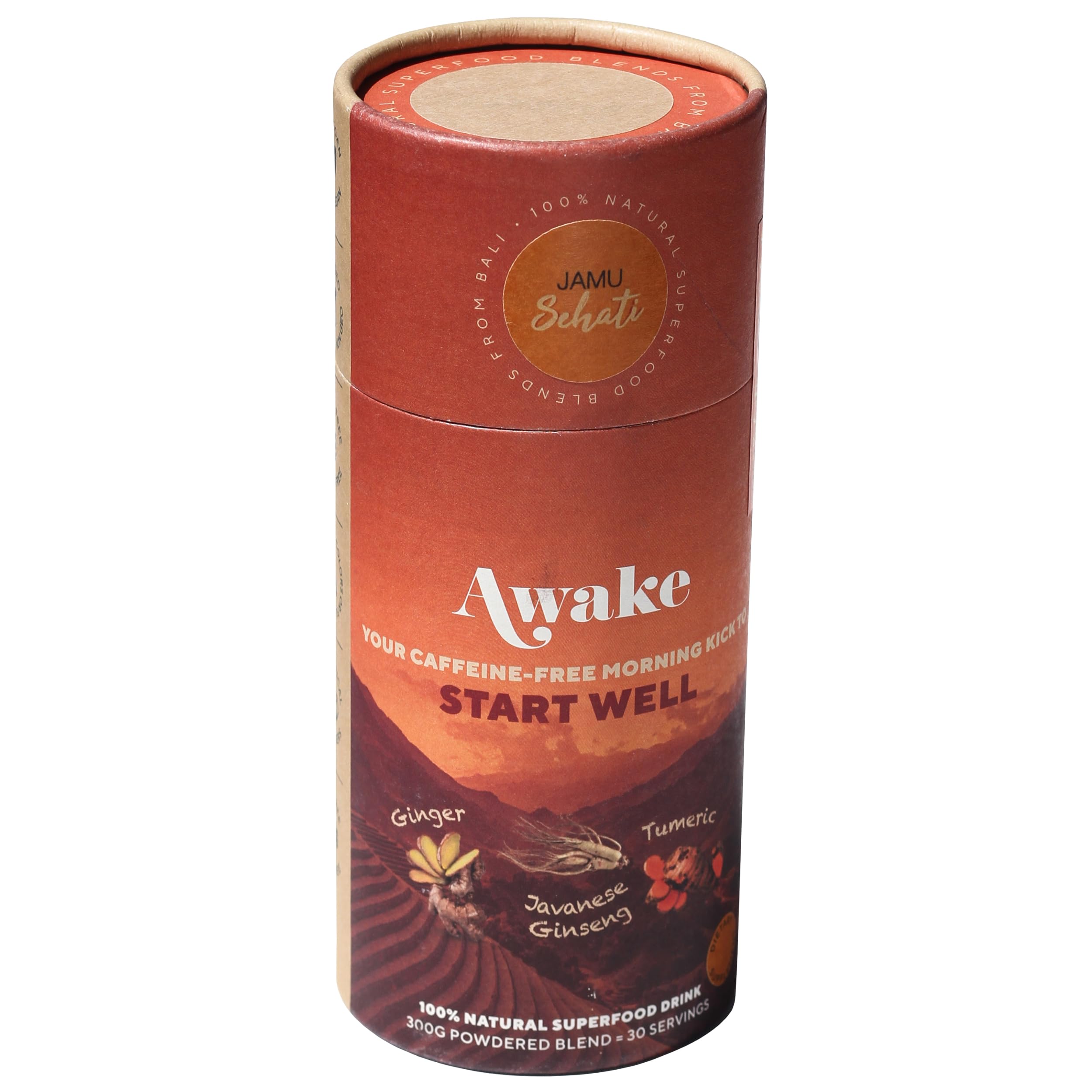 JAMUSEHATI Awake Caffeine-Free Morning Kick Natural Superfoods Blend from Bali Containing Ginger Turmeric and Javanese Ginseng Cylinder (300g) Awake Cylinder