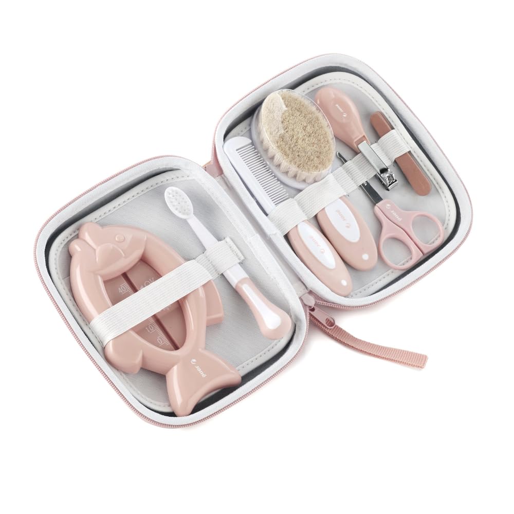 Jané's hygiene set allows you to have all the necessary utensils at hand.In the cultural bag you will find everything you need when it is time to bathe the baby.Accessories for newborns with rounded shapes and materials that are gently to the delicate skin of the baby.The Jané's hygiene set contains a brush with natural bristles, a comb, a toothbrush, safety scissors, a nail clipper, four nail files and a thermometer to measure the water temperature.Everything matching the bag.Everything matching the bag.The Jané's hygiene set is both a great gift idea and suitable for completing your hospital equipment.The structured subdivision of the practical cultural bag helps you to transport all utensils in an orderly manner.The closed bag has a size of 14 x 14 x 5 cm.The closed bag has a size of 14 x 14 x 5 cm.practically to take away: The structured subdivision of the practical cultural bag helps you to convey all the care utensils in an orderly manner.The closed bag has a size of 14 x 14 x 5 cm.Great gift idea: The Jané's hygiene set is both a great gift idea and suitable for completing your hospital equipment.Complete set for the care of your baby: The hygiene set from Jané contains a brush with natural bristles, a comb, a toothbrush, a safety scissors, a nail clipper, 4 nail files and a thermometer to measure the water temperature everything matches the pocket.Safe materials: Accessories for newborns with rounded shapes and materials that are gently to the delicate skin of the baby.Hygiene set: Jané's hygiene set allows you to have all the necessary utensils at hand in the cultural bag find everything you need when it is time to bathe the baby.Das Hygiene-Set von Jané erlaubt es dir, alle notwendigen Utensilien griffbereit zu haben. In der Kulturtasche findest alles, was du brauchst, wenn es an der Zeit ist, das Baby zu baden. Zubehör für Neugeborene mit abgerundeten Formen und Materialien, die sanft zur zarten Haut des Babys sind. Das Hygiene-Set von Jané enthält eine Bürste mit Naturborsten, einen Kamm, eine Zahnbürste, eine Sicherheitsschere, einen Nagelclipper, vier Nagelfeilen und ein Thermometer, um die Wassertemperatur zu messen. Alles farblich passend zur Tasche. Alles farblich passend zur Tasche. Das Hygiene-Set von Jané ist sowohl eine tolle Geschenkidee als auch geeignet, um deine Krankenhausausstattung zu vervollständigen. Die strukturierte Unterteilung der praktischen Kulturtasche hilft dir dabei, alle Utensilien geordnet zu transportieren. Die geschlossene Tasche hat eine Größe von 14 x 14 x 5 cm. Die geschlossene Tasche hat eine Größe von 14 x 14 x 5 cm.Praktisch zum Mitnehmen: Die strukturierte Unterteilung der praktischen Kulturtasche hilft dir dabei, alle Pflegeutensilien geordnet zu transportieren. Die geschlossene Tasche hat eine Größe von 14 x 14 x 5 cm. Tolle Geschenkidee: Das Hygiene-Set von Jané ist sowohl eine großartige Geschenkidee als auch geeignet, um deine Krankenhausausstattung zu vervollständigen. Komplettes Set für die Pflege deines Babys: Das Hygiene-Set von Jané enthält eine Bürste mit Naturborsten, einen Kamm, eine Zahnbürste, eine Sicherheitsschere, einen Nagelclipper, 4 Nagelfeilen und ein Thermometer, um die Wassertemperatur zu messen Alles farblich passend zur Tasche. Sichere Materialien: Zubehör für Neugeborene mit abgerundeten Formen und Materialien, die sanft zur zarten Haut des Babys sind. Hygiene-Set: Das Hygiene-Set von Jané erlaubt es dir, alle notwendigen Utensilien griffbereit zu haben In der Kulturtasche findest alles, was du brauchst, wenn es an der Zeit ist, das Baby zu baden.Jané Hygiene-Set mit Kulturtasche, Kamm, Bürste mit Naturborsten, Schere, Nagelclipper, Feilen, Zahnbürste und Thermometer Pale