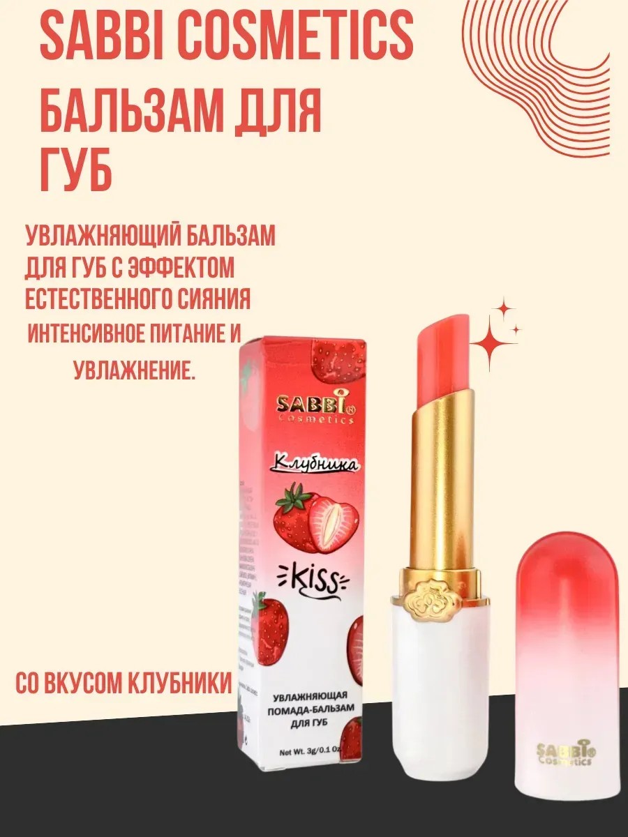 Откройте для себя бальзам для губ SABBI COSMETICS. Увлажнение, обладающий невероятно лёгкой текстурой. Этот бальзам со вкусом клубники обогащён чистым молотым воском, пчелиным воском, витамином Е, что позволяет ему не только увлажнять, но и придавать губам эстетичный нежно-розовый оттенок. Уникальная формула создаёт эффект объёма, делая губы более полными и соблазнительными.Глубоко питает и восстанавливает кожу на клеточном уровне, увлажняет отлично защищает от холода, ветра и солнца.